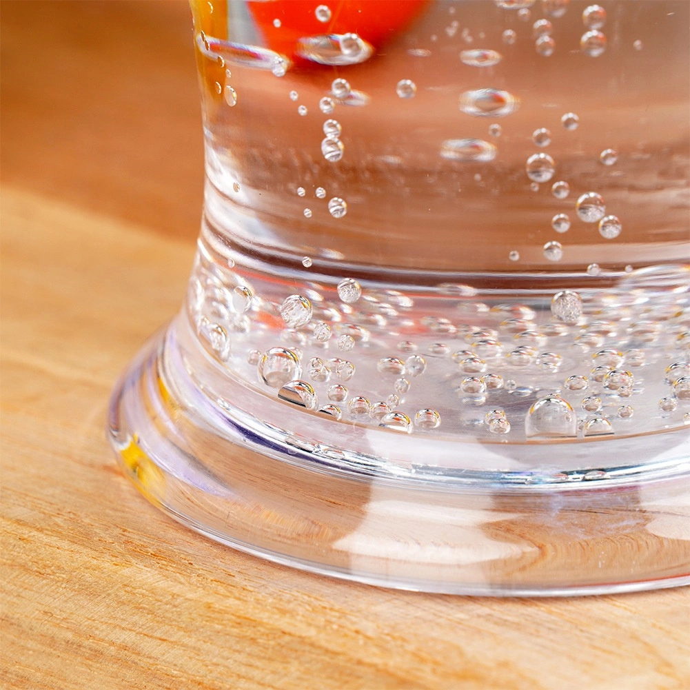 Oblika z razširjenim dnom povečuje stabilnost na mizi in zmanjšuje tveganje prevrnitve, ne glede na to, ali strežete pivo, sok ali vodo.