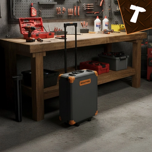 Iščete univerzalno in hkrati pregledno opremo za vsakodnevna popravila? Ta profesionalni set orodja BIGSTREN združuje bogato opremo (ključi, glave, biti, izvijači, klešče, dodatki) z mobilnostjo zahvaljujoč kovčku na kolesih. Vse je sistematično razdeljeno v štiri odstranljive vložke za hiter dostop.