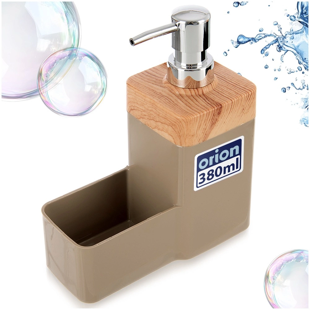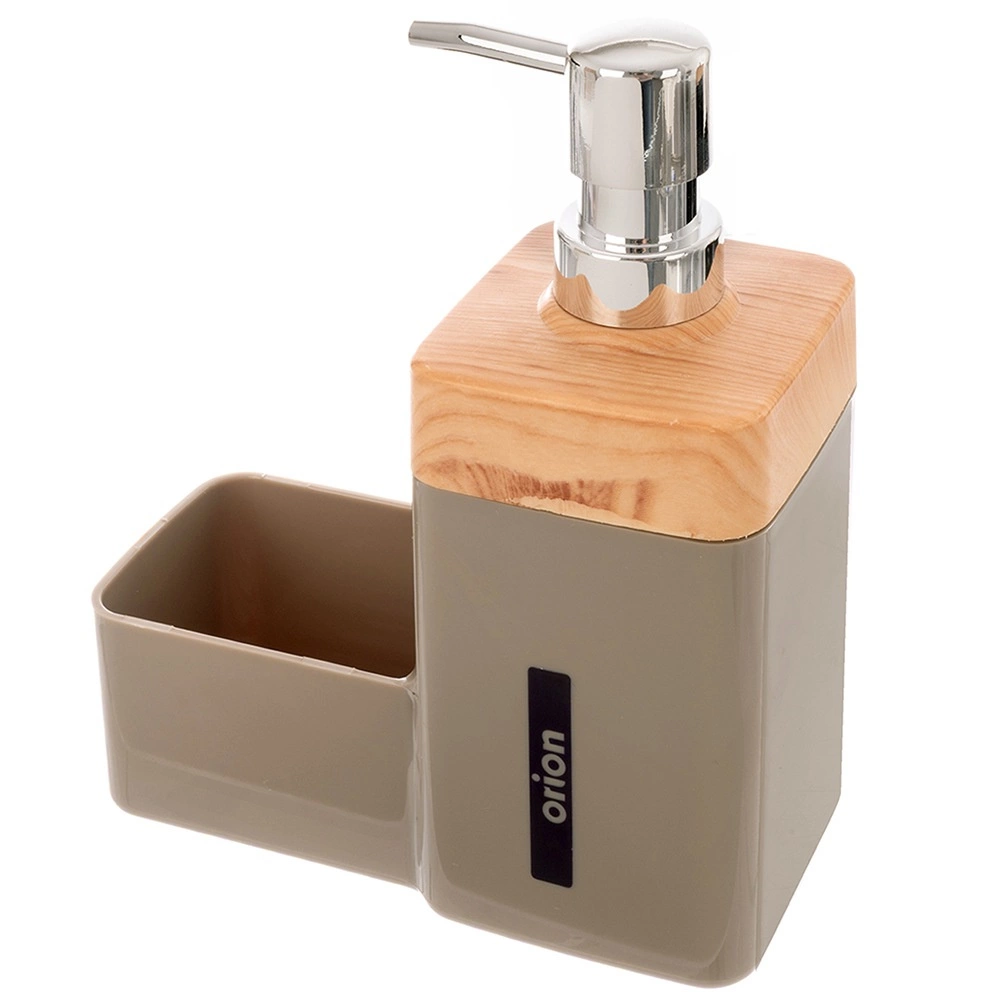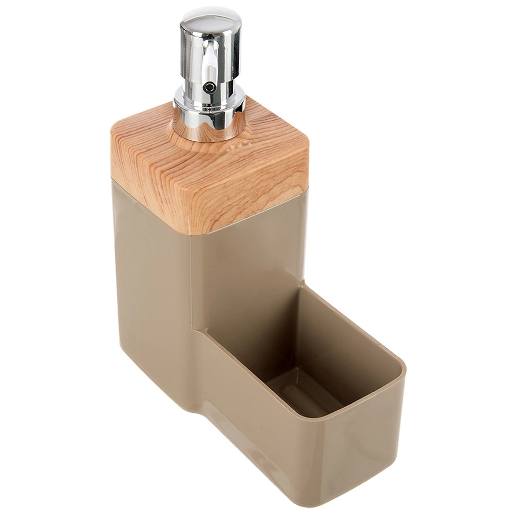 Ta kompaktni dozirnik detergenta z držalom za gobico je odlična izbira za vsakodnevno pomivanje posode. Zahvaljujoč prostornini 500 ml boste redkeje dolivali, medtem ko stranski žep poskrbi, da sta gobica ali krpica vedno pri roki, pomivalno korito pa brez nereda. Bež ohišje z dekorativnim lesenim akcentom se lepo poda k modernim, klasičnim in industrijskim kuhinjam.