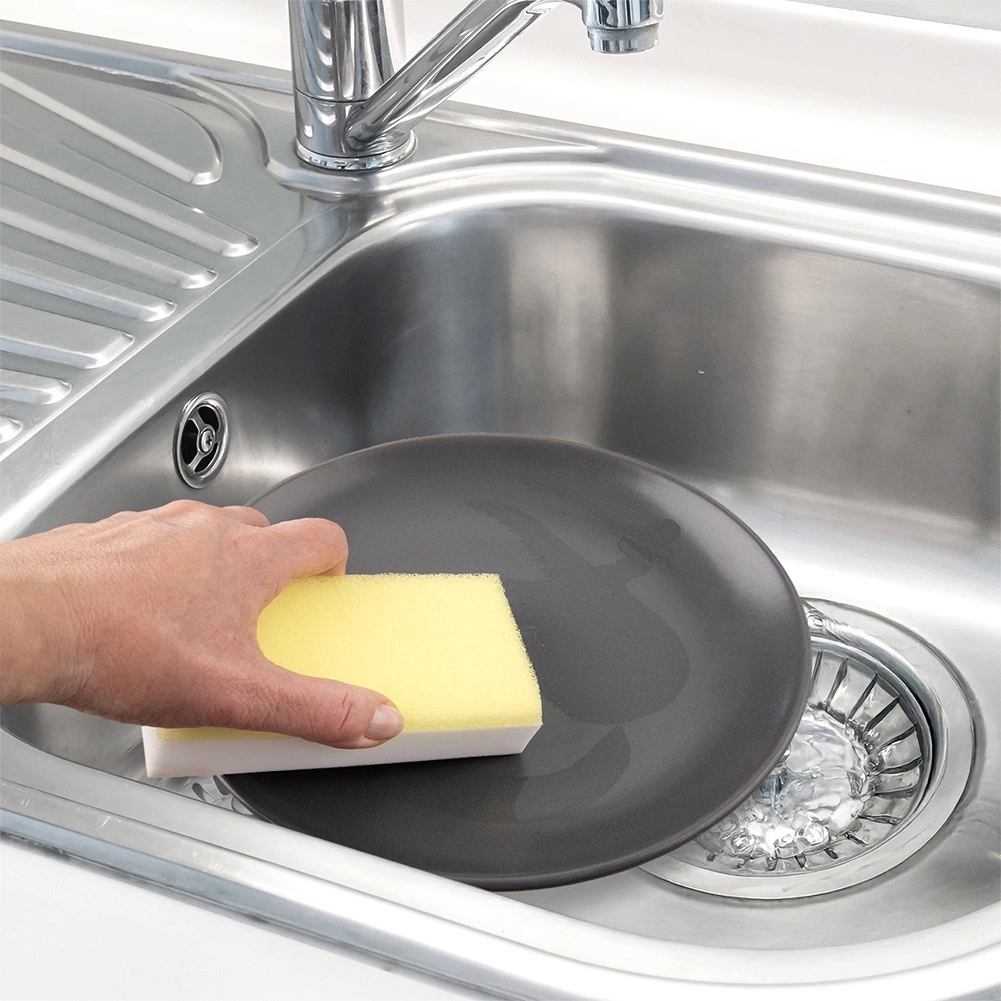 Melaminska pena nežno »izbriše« madeže, medtem ko strukturirana plast učinkovito odstrani zasušene nečistoče. Odlično za vsakodnevno čiščenje kuhinje in doma.