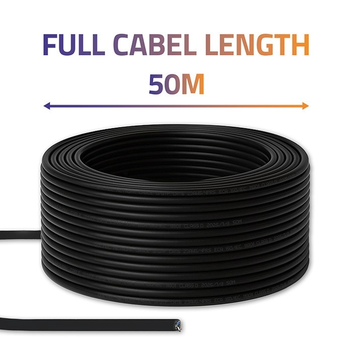 Zanesljiv omrežni kabel UTP CAT6 dolžine 50 m za Gigabit Ethernet ponuja hiter prenos do 1 Gb/s, frekvenco 250 MHz in stabilno povezavo za 4K pretakanje, spletne igre in delo od doma. Zahvaljujoč trdni PVC izolaciji ter konstrukciji iz enovodnega sukano-paričnega kabla zagotavlja odpornost, nizke motnje in zanesljivo delovanje na daljših razdaljah.