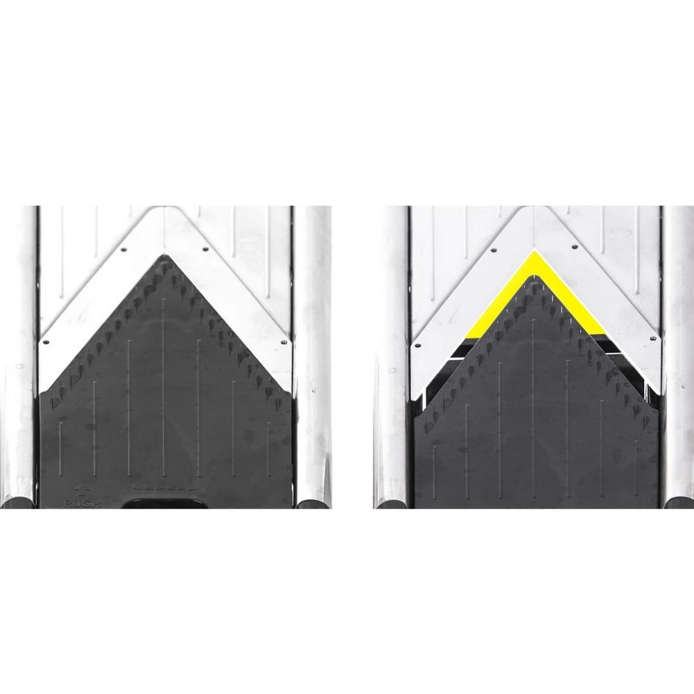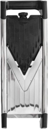 Zaščitno držalo ščiti prste, zložljive nedrseče nogice pa mandolini zagotavljajo stabilen naklon za hitro in varno delo.
