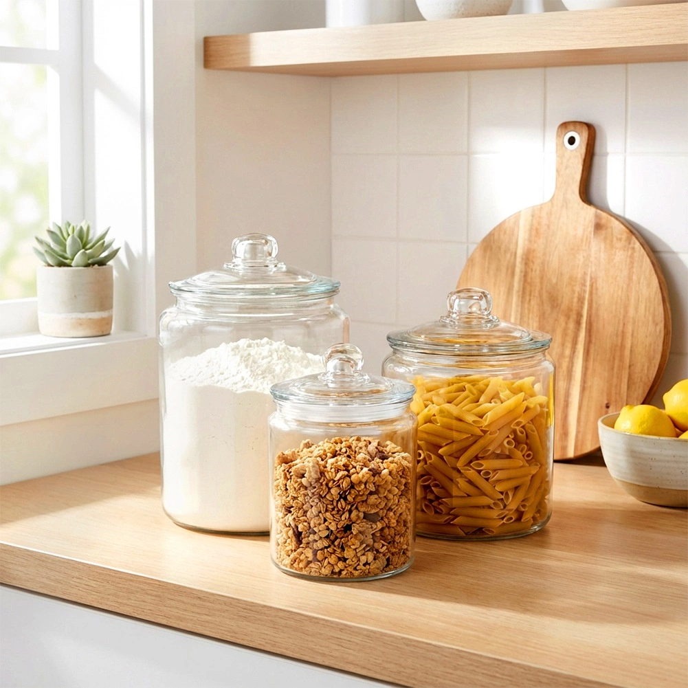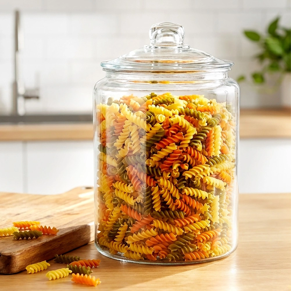 Odporno čisto steklo omogoča takojšen nadzor zalog in lepo razstavi testenine, moko ali piškote na kuhinjskem pultu.
