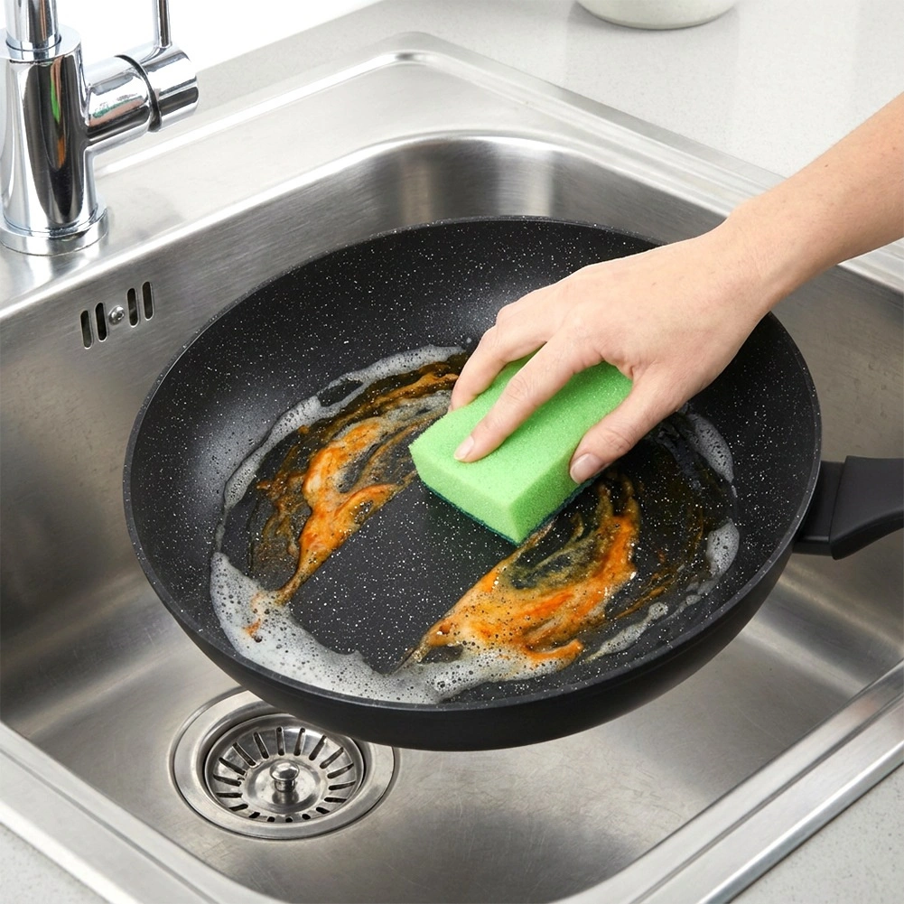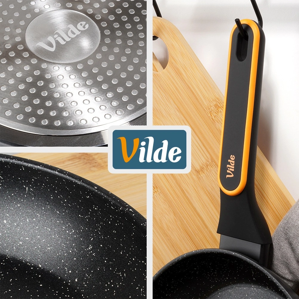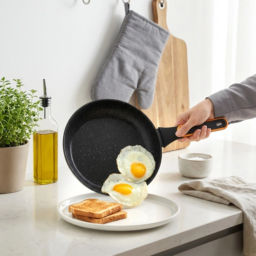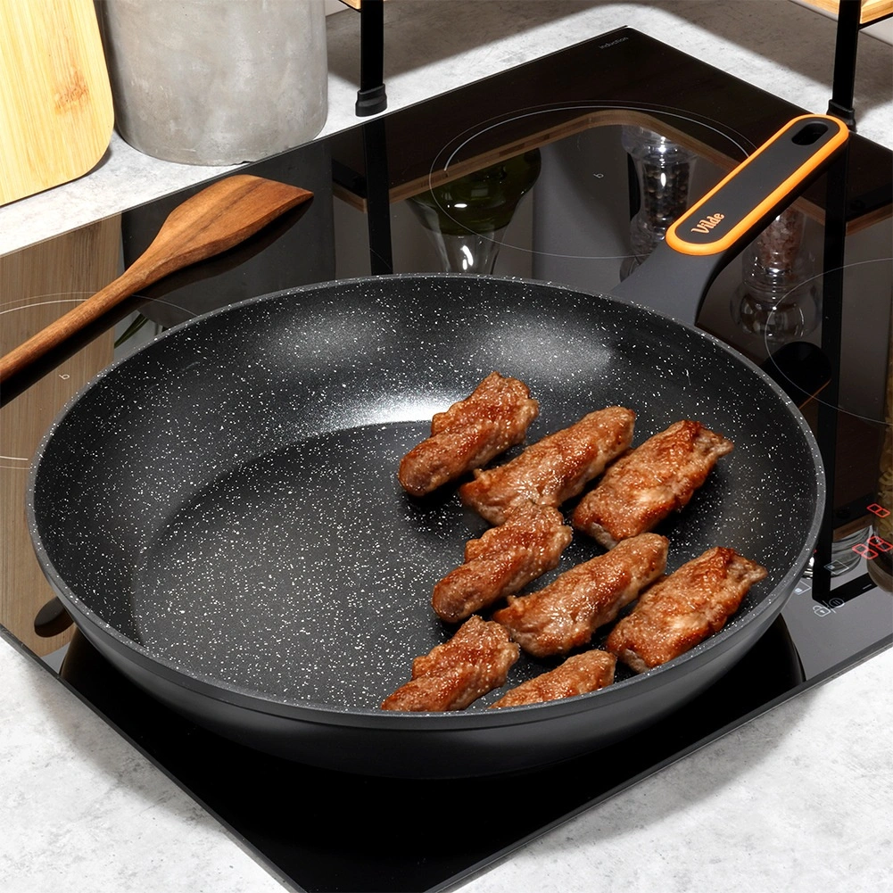 Površina z videzom kamna zmanjšuje prijemanje in omogoča cvrtje z minimalno količino olja. Hrana se zlahka obrača, ponev pa se hitro čisti.