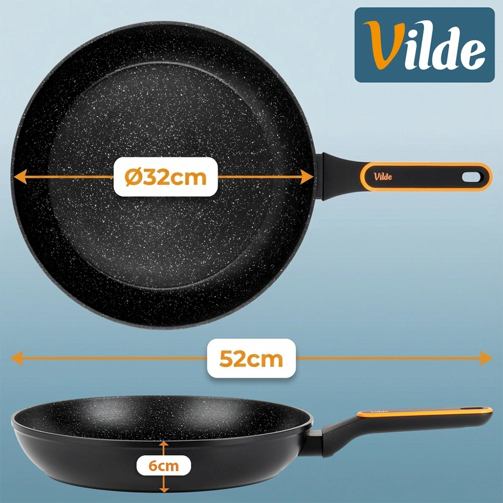 Univerzalna granitna ponev s premerom 32 cm za vsakodnevno kuhanje. Zahvaljujoč neprijemljivi granitni površini, hitremu in enakomernemu razvodu toplote ter udobnemu ročaju, ki se ne segreva, boste meso, zelenjavo in jajca pripravili z minimalno količino maščobe na vseh vrstah štedilnikov, vključno z indukcijo.