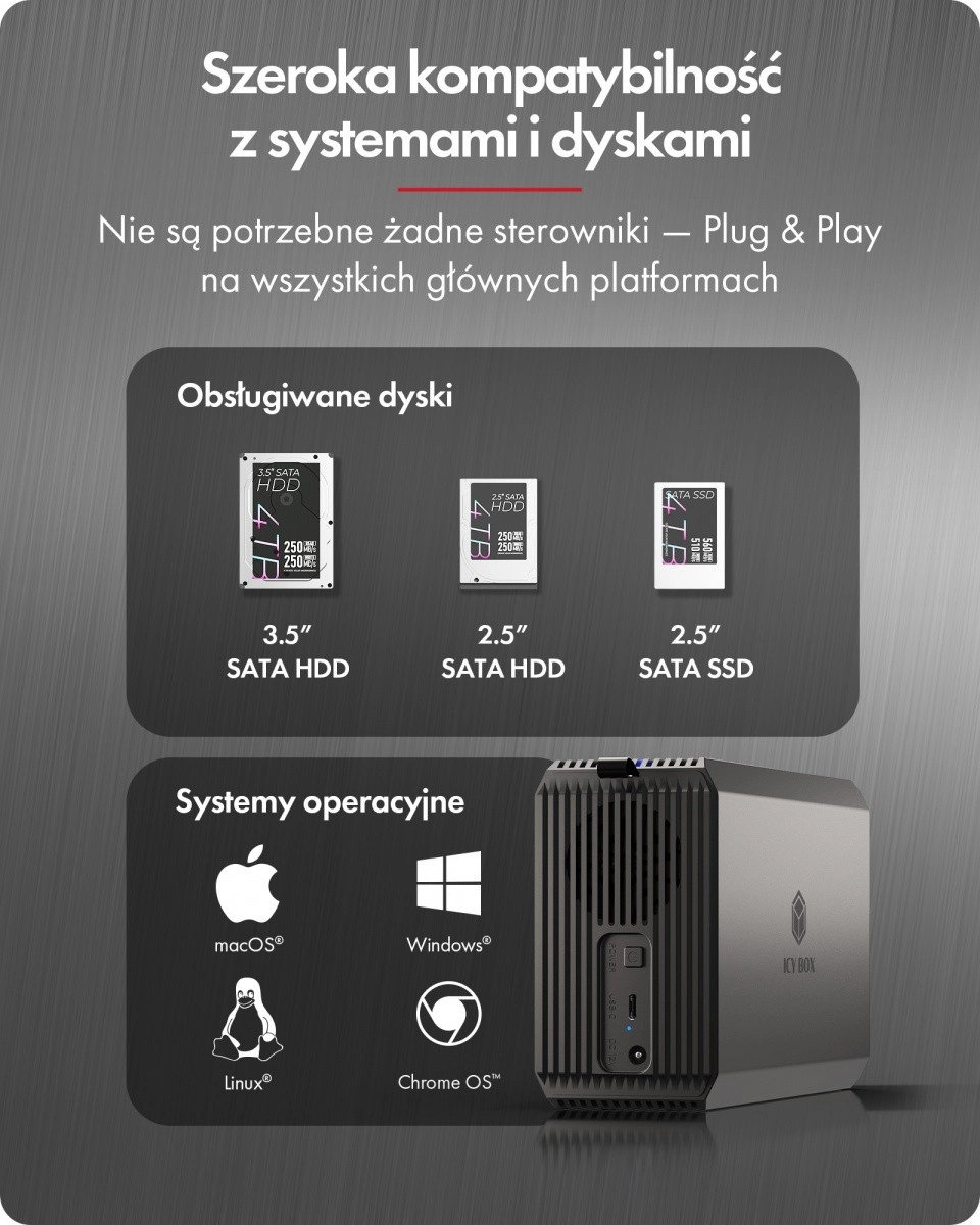 IB-RD3720-CU3 je vsestranski zunanji RAID box za zahtevne uporabnike in kreativne ekipe, ki potrebujejo zanesljivo in hitro shrambo. S podporo dveh 2,5"/3,5" SATA diskov s skupno kapaciteto do 60 TB zlahka obvlada varnostne kopije, delo z videom in obsežne projekte.