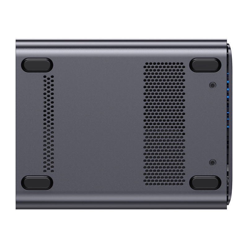 Vrhunska povezljivost vključuje 10 GbE + 5 GbE, dvojni USB4, HDMI 2.1 ter razširljivost prek PCIe x16 in OCuLink (eGPU). MinisCloud OS ponuja večplatformski dostop (Windows/macOS/iOS/Android), inteligentno galerijo fotografij z AI, stiskanje LZ4 in šifrirano oddaljeno povezavo brez zapletene konfiguracije.