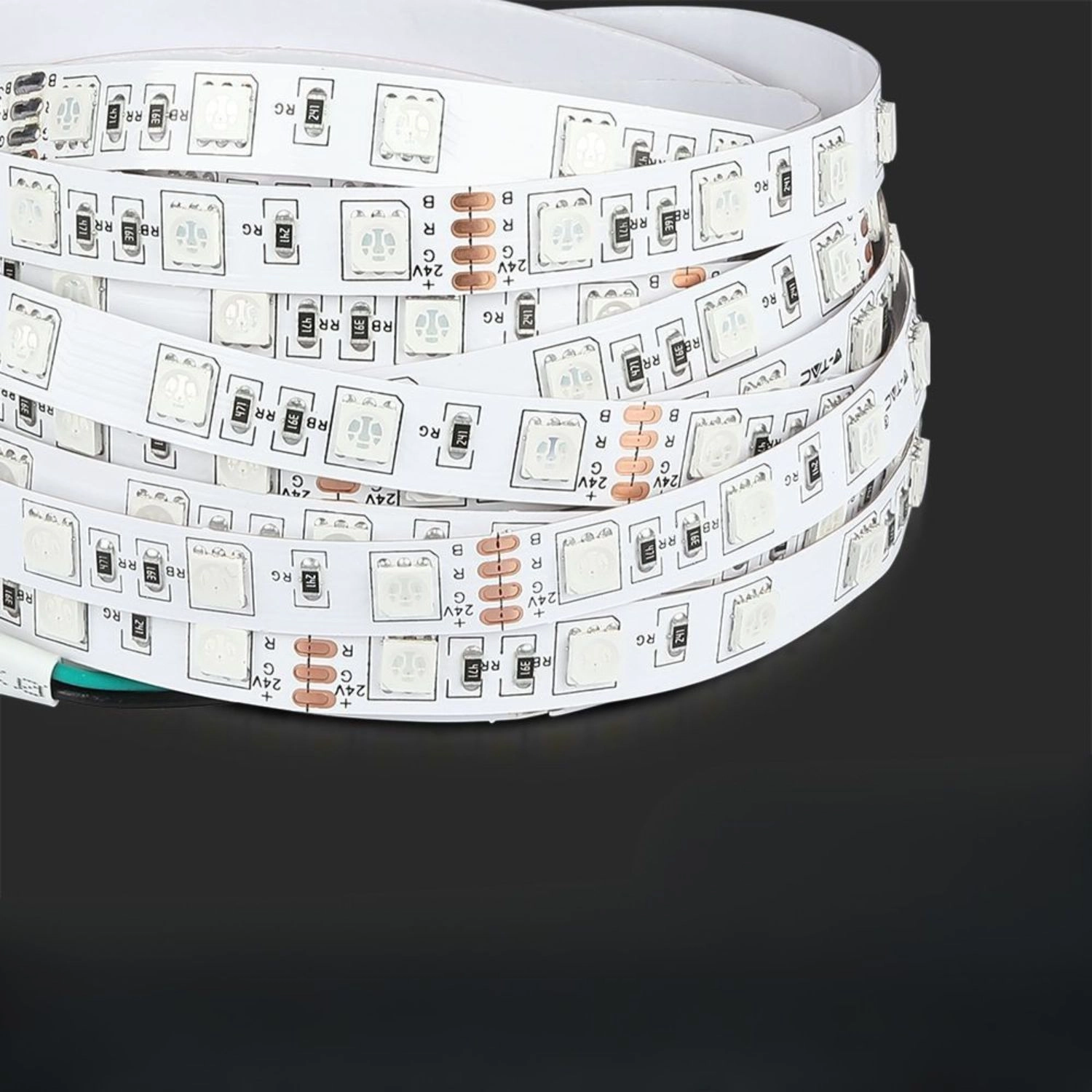Nizka napetost 24 V, samolepilno ozadje in jasno označena polariteta olajšajo namestitev na različne površine v notranjih prostorih.