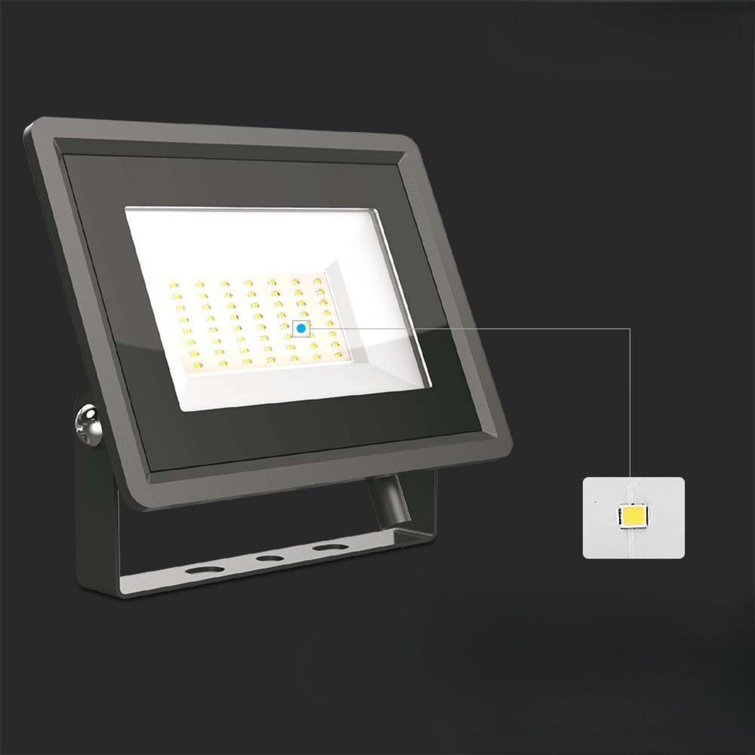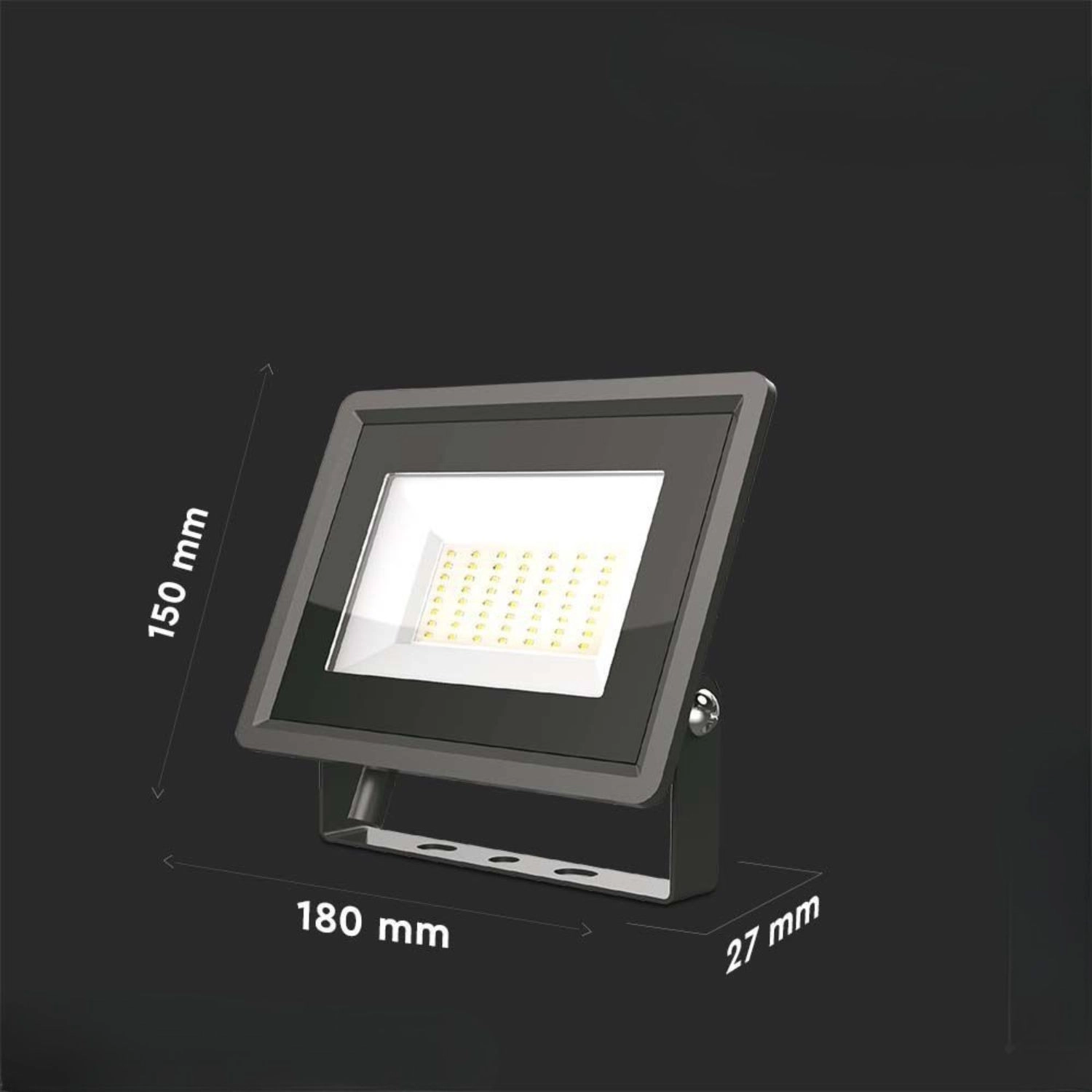 Zmogel LED reflektor 50 W je opremljen z naprednim SMD LED čipom in integriranim IC gonilnikom, ki zagotavlja stabilen tok brez potrebe po zunanjem napajalniku. Zahvaljujoč nevtralno beli (4000 K) nudi naravno in udobno osvetlitev, primerno za komercialno in industrijsko uporabo.