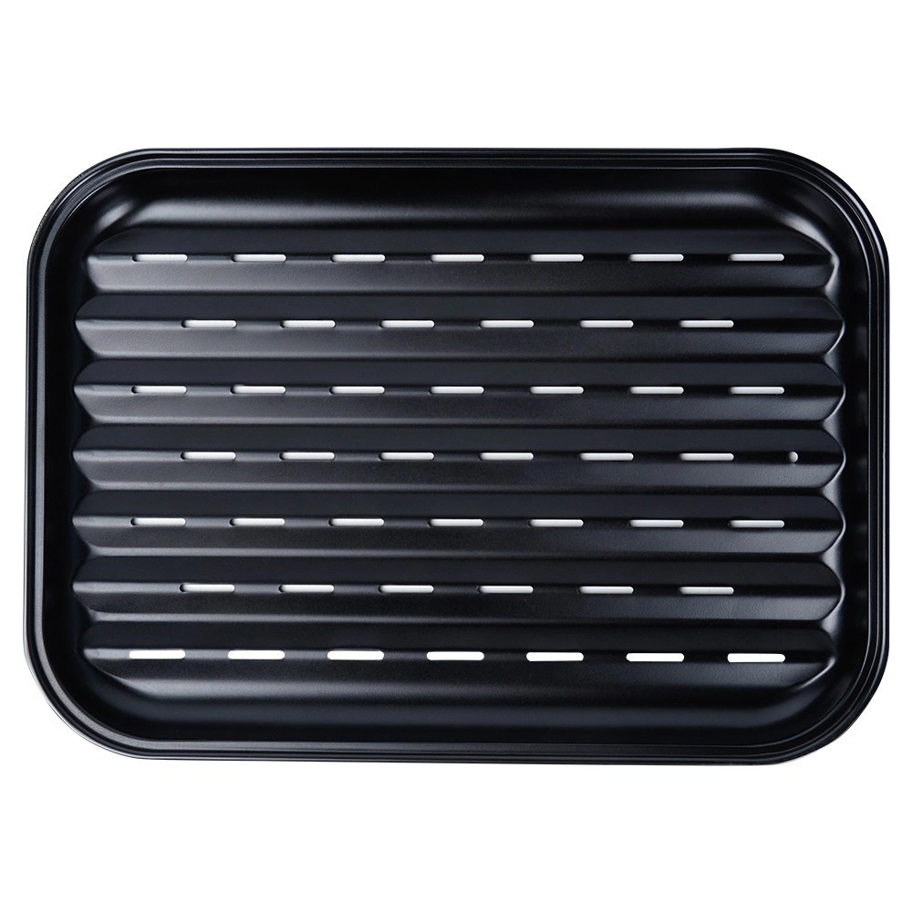 Perforirano in rebrasto dno odvaja maščobo in spodbuja kroženje toplote, zato sta zelenjava in meso hrustljava in sočna.