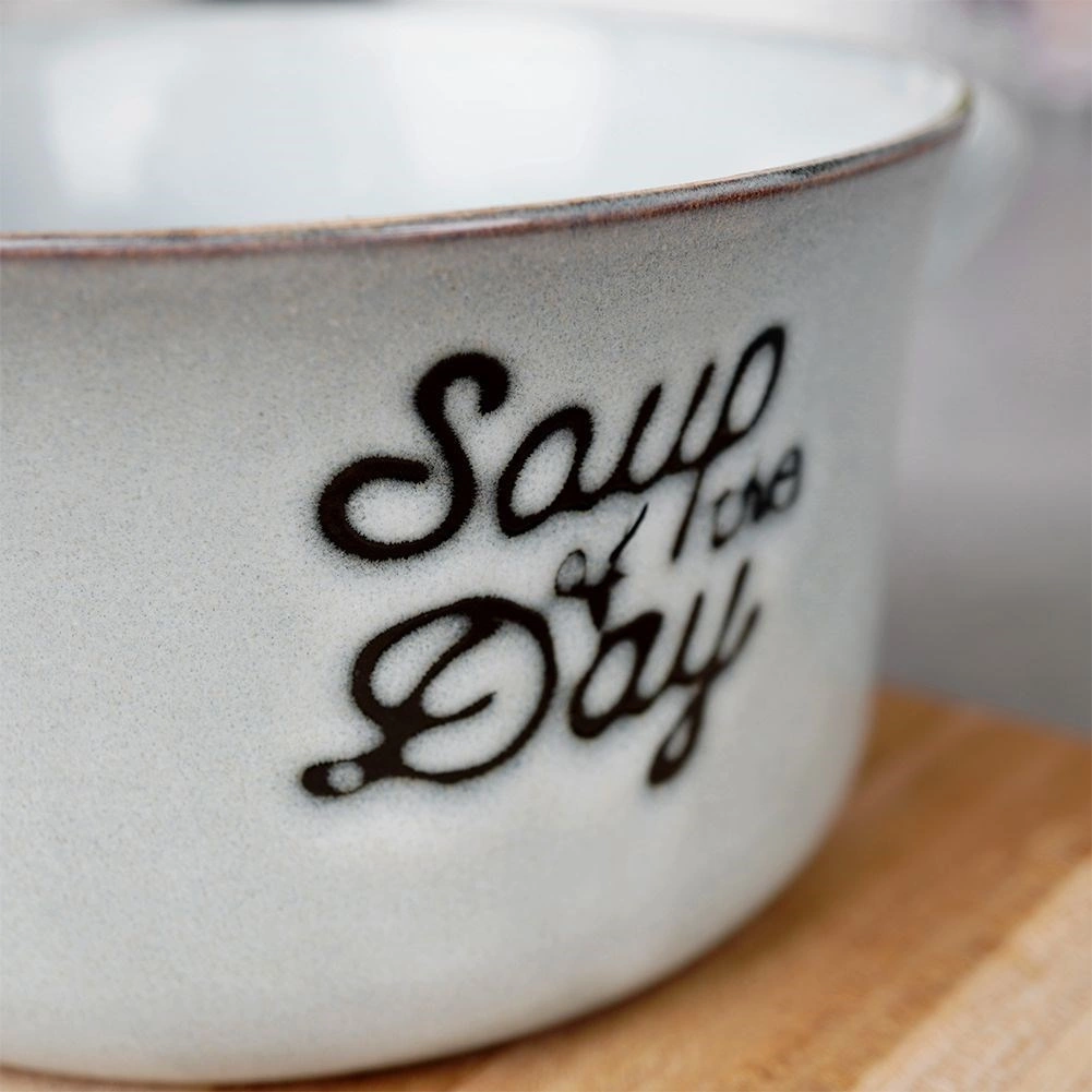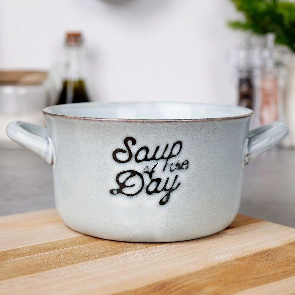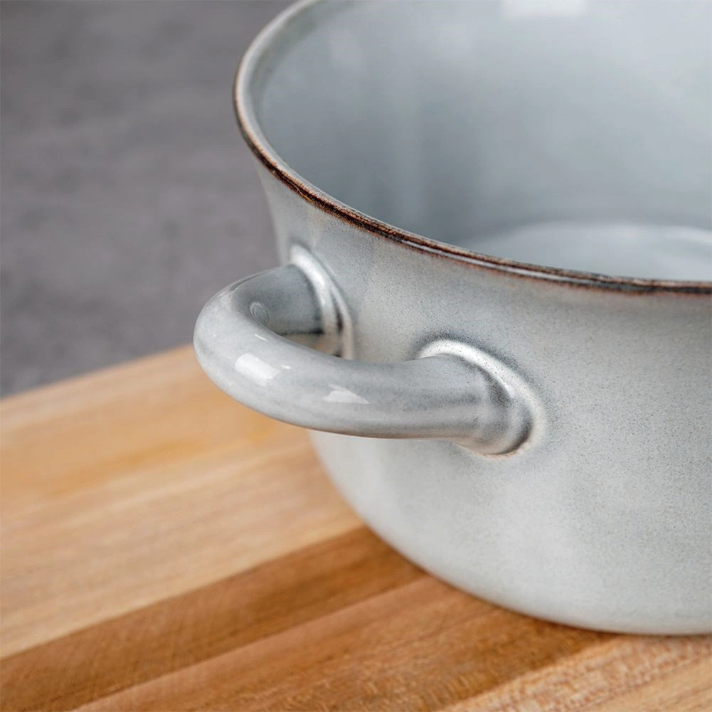 Robustna keramična izvedba dobro zadržuje toploto, širok rob omogoča lažje serviranje, dva udobna ročaja pa zagotavljata varno rokovanje tudi z vročo vsebino. Skodela je preprosta za vzdrževanje – primerna je za pomivalni stroj in segrevanje v mikrovalovni pečici.