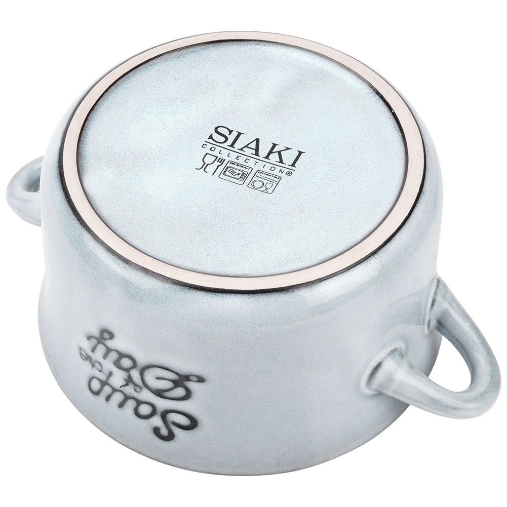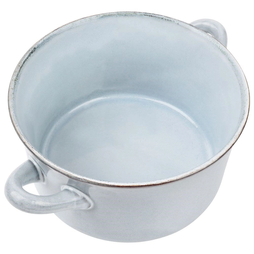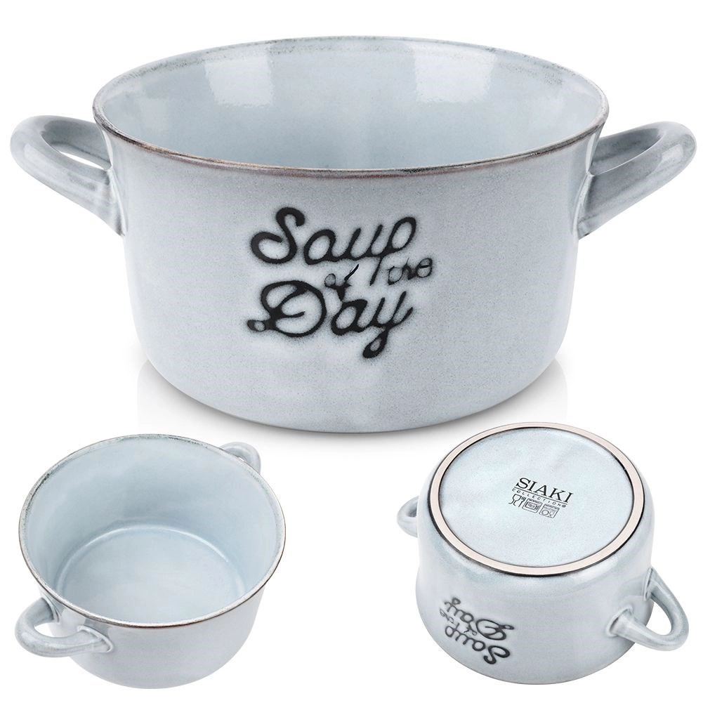 Stilska buljon skodela s prostornino 600 ml iz kakovostne keramike v svetlo modri barvi je idealna za serviranje juh, bistrih juh in krem. Zahvaljujoč dvojnima stranskima ročajema jo je udobno prenašati, glazirana površina pa olajša čiščenje, praktične dimenzije pa so kot nalašč za vsakodnevno uporabo pri mizi. Primerna za pomivalni stroj in mikrovalovno pečico.