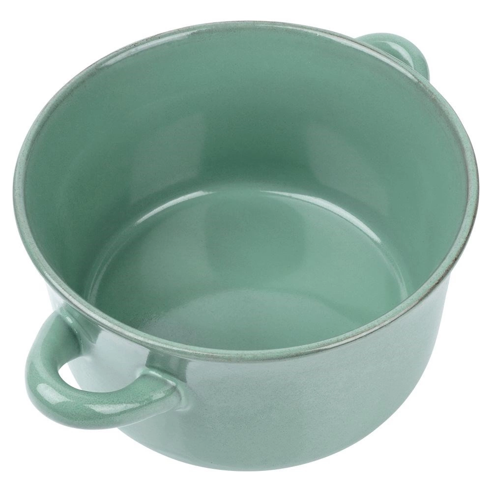 Dva praktična ročaja omogočata varno in udobno prenašanje tudi z vročo vsebino. Skodela je odporna za vsakodnevno uporabo, lahko jo pomivate v pomivalnem stroju in uporabljate v mikrovalovni pečici. Elegantna zelena niansa se ujema z različnimi vrstami posode in vaši kuhinji doda svež pridih.