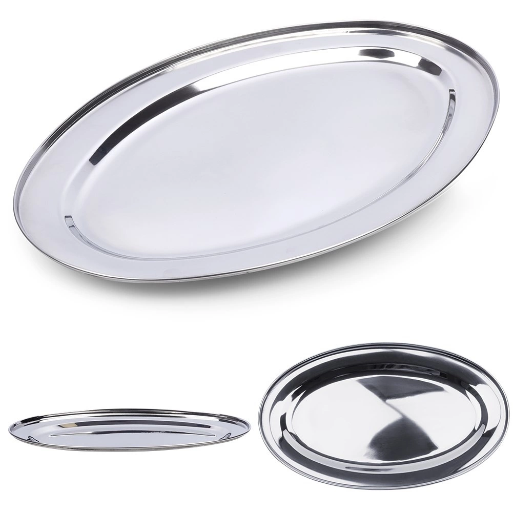 Univerzalni ovalni pladenj iz nerjavnega jekla je odlična izbira za vsakodnevno serviranje in slavnostne priložnosti. Polirana površina z visokim sijajem poudari predstavitev jedi in izboljša estetiko pogrinjka. Zaradi povišanega roba je rokovanje udobno in pomaga preprečevati neželeno stekanje sokov.