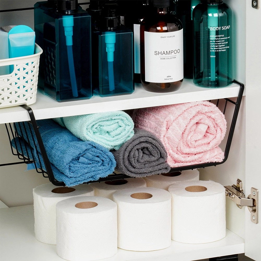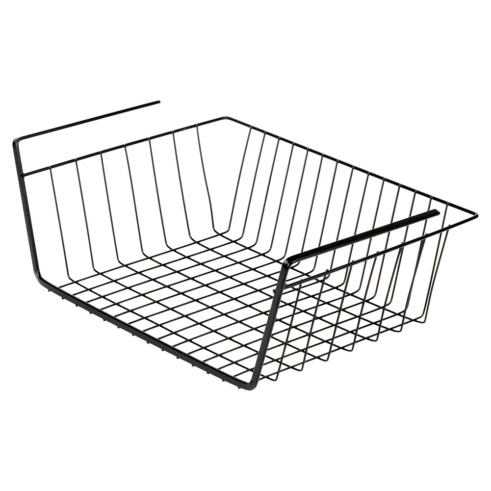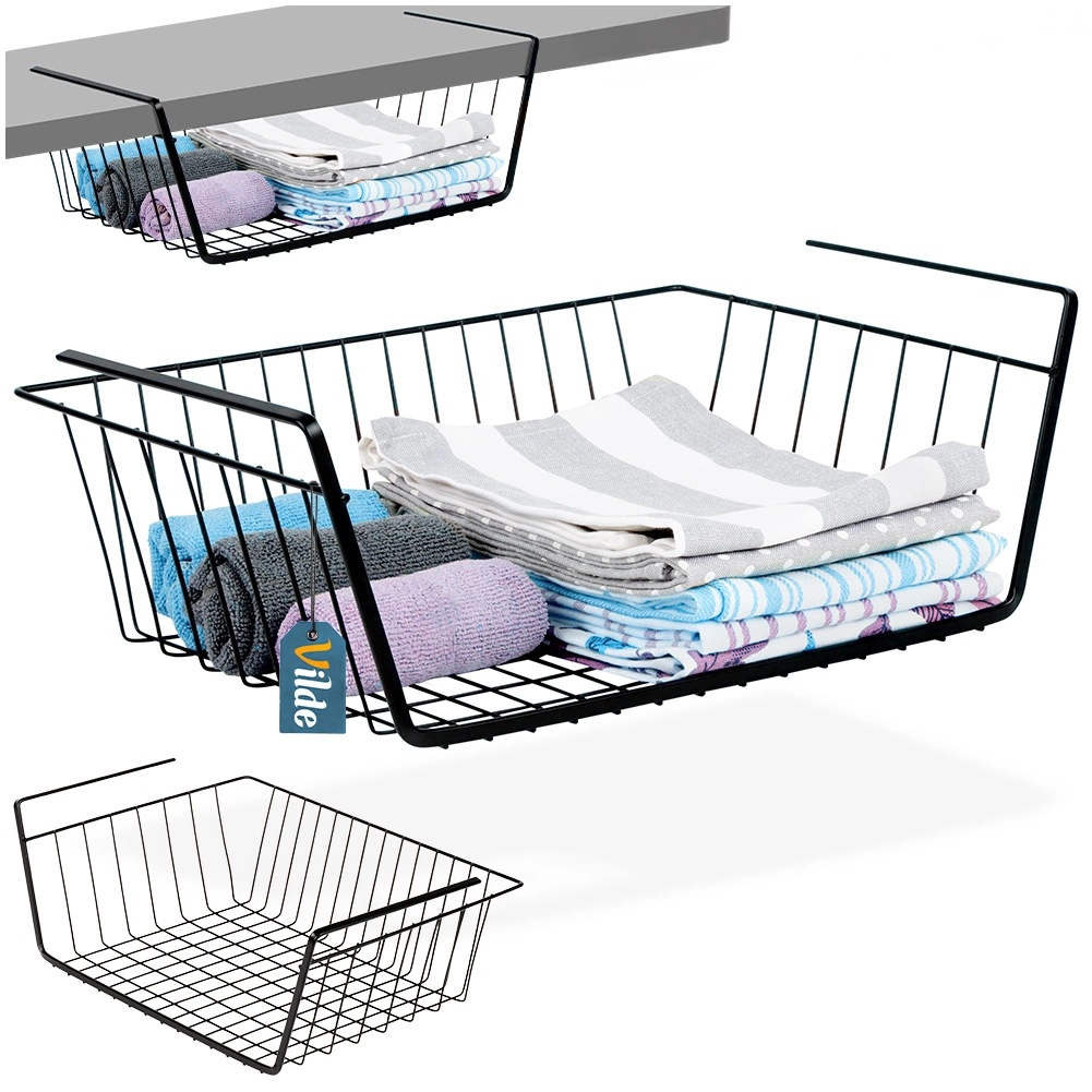 Praktična viseča košara pod polico iz kakovostne kovine v črni barvi v hipu razširi odlagalni prostor – brez vrtanja in orodja. Zahvaljujoč odprti žični konstrukciji imate vsebino vedno na očeh in je zagotovljeno prezračevanje. Idealna za kuhinjo, kopalnico, garderobo in pisarno za pregledno shranjevanje brisač, tekstila in kuhinjskih pripomočkov.