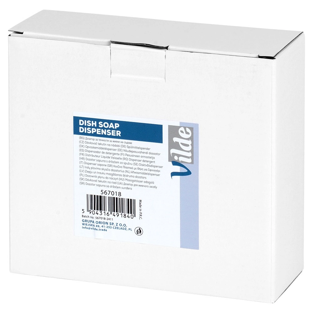 Praktičen kuhinjski pomočnik: kompakten dozator za pomivalno sredstvo z integriranim prostorom za gobico. Stilska mat črna površina in rebrast dizajn ohranjata področje pomivalnega korita urejeno in elegantno. Prostornina 400 ml, enostavno dolivanje in prihranek prostora v vsaki kuhinji.