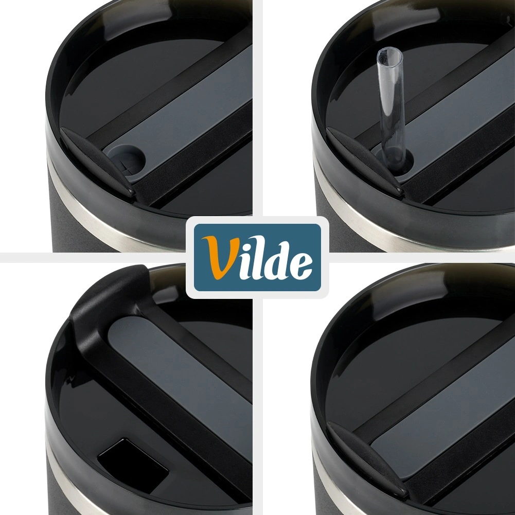 Praktičen pokrov s silikonskim tesnilom in dvema načinoma pitja: preko slamice ali neposredno iz ustnika; vse zlahka zaprete z zasukom.
