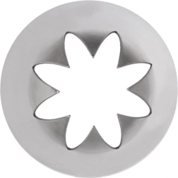Praktičen cukrarski nastavek v obliki cveta iz kakovostnega nerjavečega jekla za preprosto in učinkovito okraševanje tort, pit in cupcakesov. Zaradi trdne izdelave je vzdržljiv in varen za stik z živili, ustreza večini cukrarskih vrečk in ga je mogoče pomivati v pomivalnem stroju.