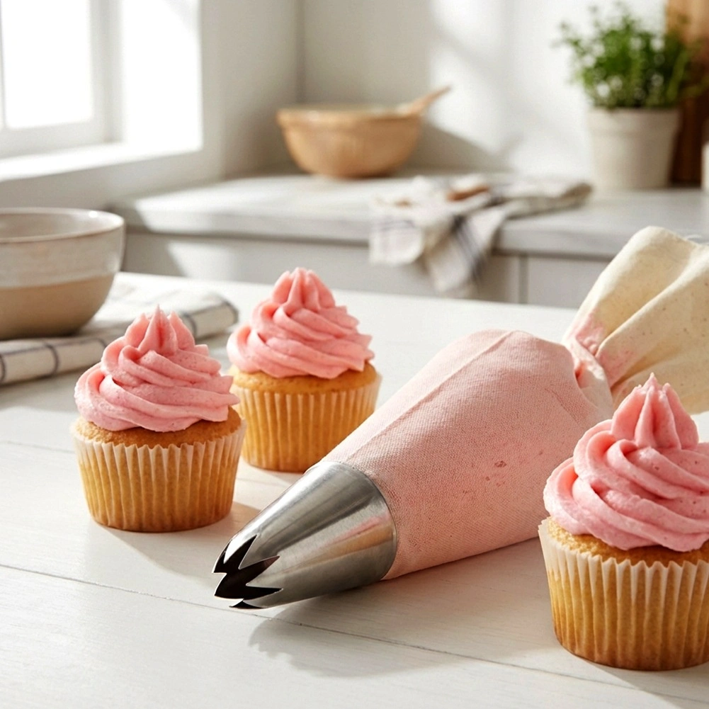 Nastavek ustreza tako enkratnim kot tudi tekstilnim cukrarskim vrečkam in olajša enakomeren nanos kreme.