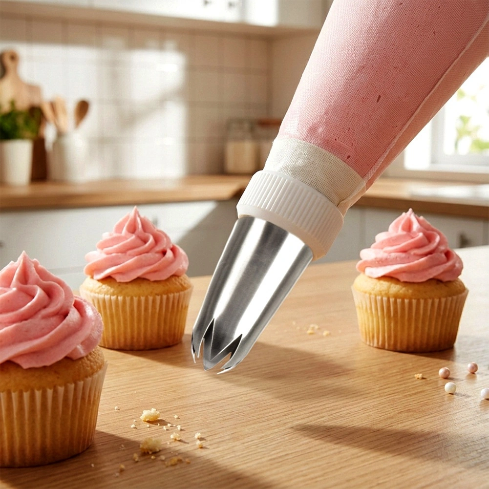 Ostri izrezi nastavka ustvarjajo čiste zvezdaste linije in puhasto kremaste cvetove na tortah in cupcakesih.