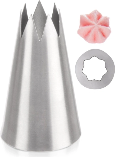 Velika odprta oblika ustvarja izrazite vrtince, rozetke in cvetove, idealno za torte in cupcake.