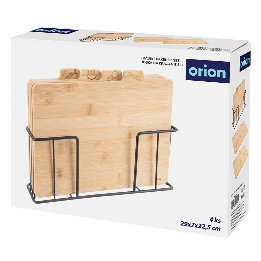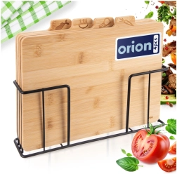 Komplet desk iz kakovostnega bambusovega lesa prinaša red na kuhinjski pult in maksimalno higieno pri pripravi jedi. Jasne grafične ikone na zavihkih olajšajo izbiro prave deske za posamezna živila ter pomagajo preprečevati navzkrižno kontaminacijo. Stabilno kovinsko stojalo prihrani prostor, omogoča hitro sušenje in pregledno shranjevanje.