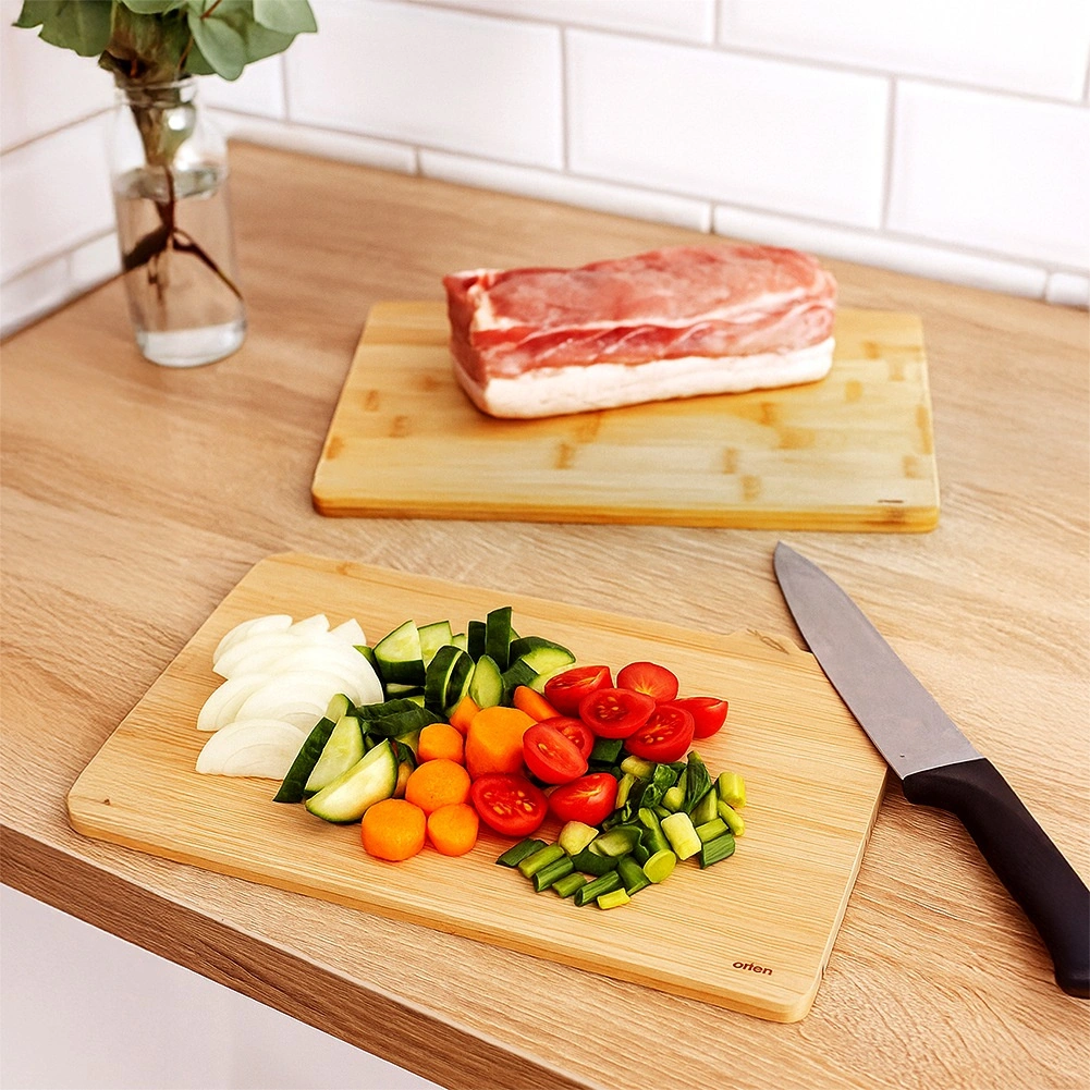 Deske iz kakovostnega bambusa so čvrste, odporne na vlago in ne prevzemajo vonjav. Naravna površina je prijazna do rezil kuhinjskih nožev.