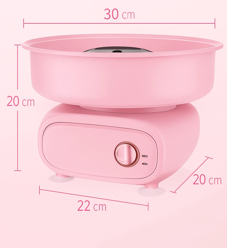 Spremenite navaden sladkor v puhasto sladico v hipu. Ta rožnat domači stroj za sladkorno peno z enostavnim upravljanjem in stabilnimi priseski je idealen za zabave in družinske večere. Ponuja hitro segrevanje, preprosto upravljanje z enim gumbom in enostavno čiščenje. Zahvaljujoč veliki skledi in nedrsečim nogicam zlahka in varno postreže več gostom.