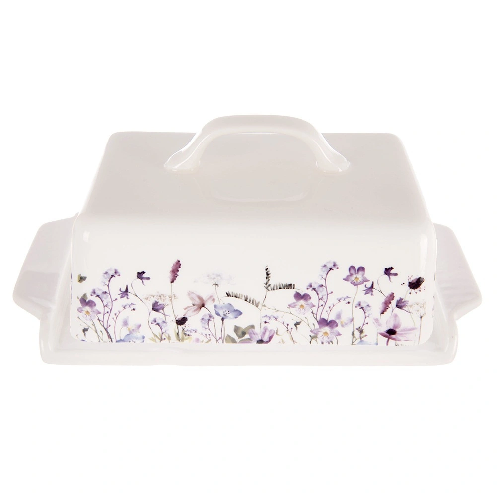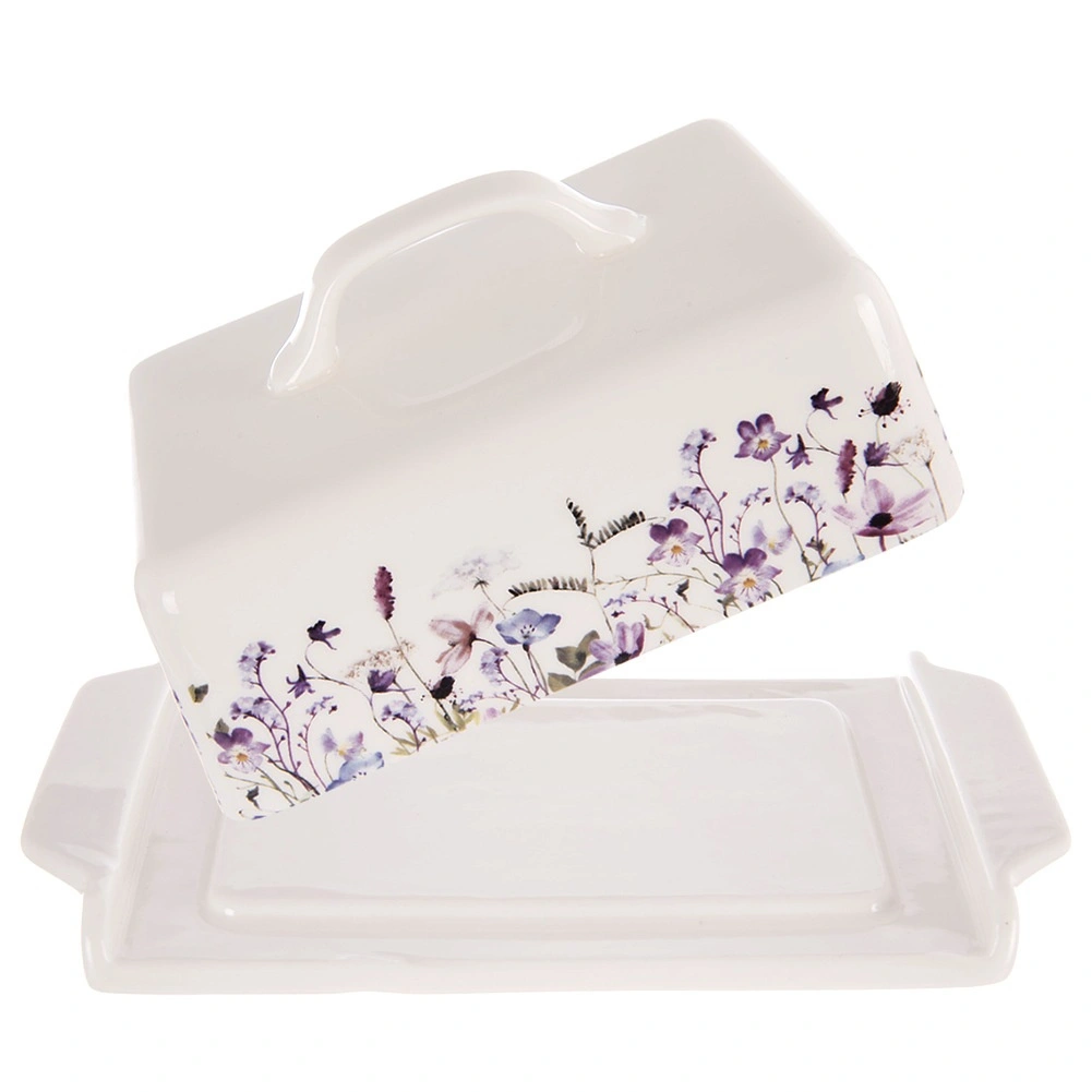Ta porcelanasta posoda za maslo v beli barvi z očarljivim motivom travniških cvetov je stilski in funkcionalni dodatek vsaki kuhinji. Maslo ohranja zaščiteno, sveže in pripravljeno za serviranje neposredno na mizo. Zahvaljujoč pokrovu z udobnim držalom je rokovanje enostavno, maslo pa ostaja higiensko pokrito.