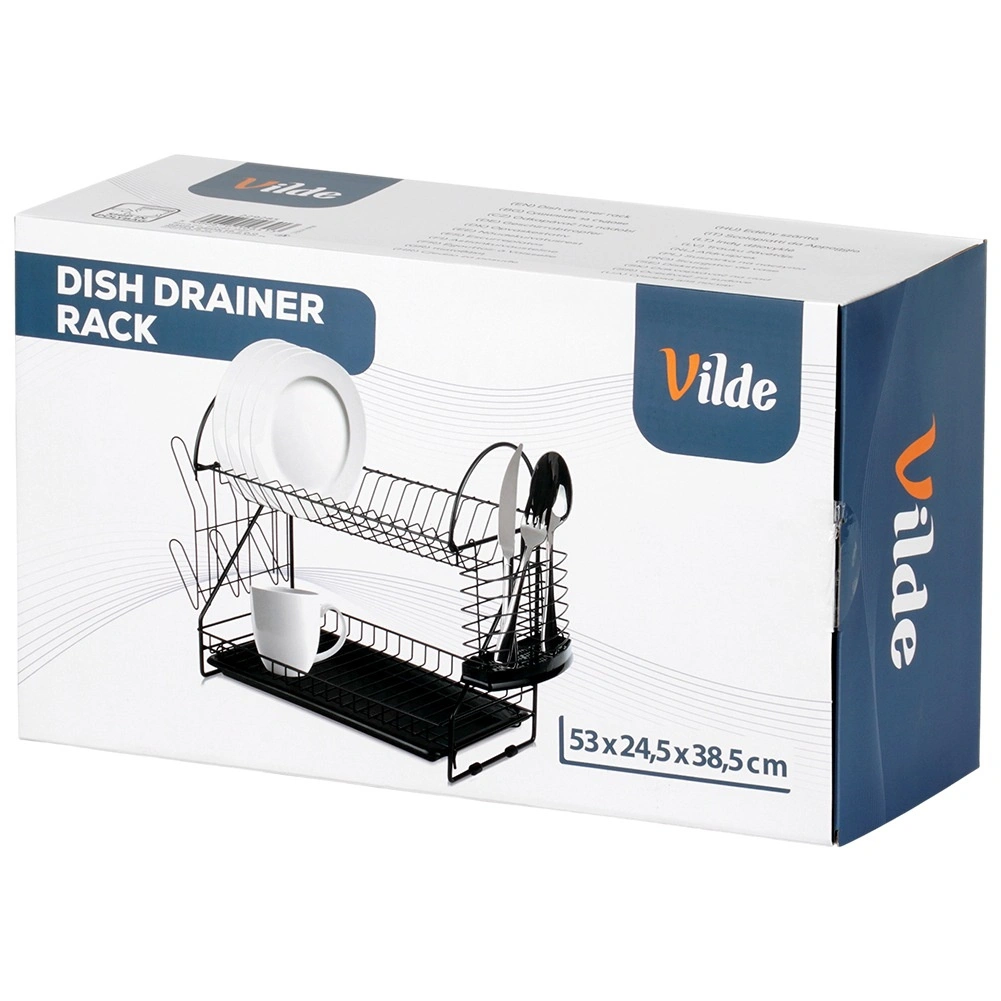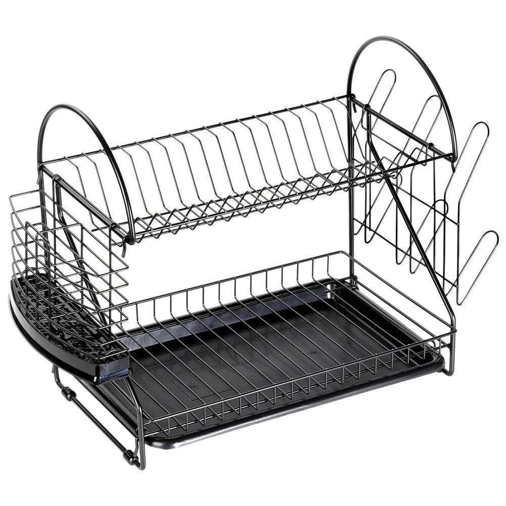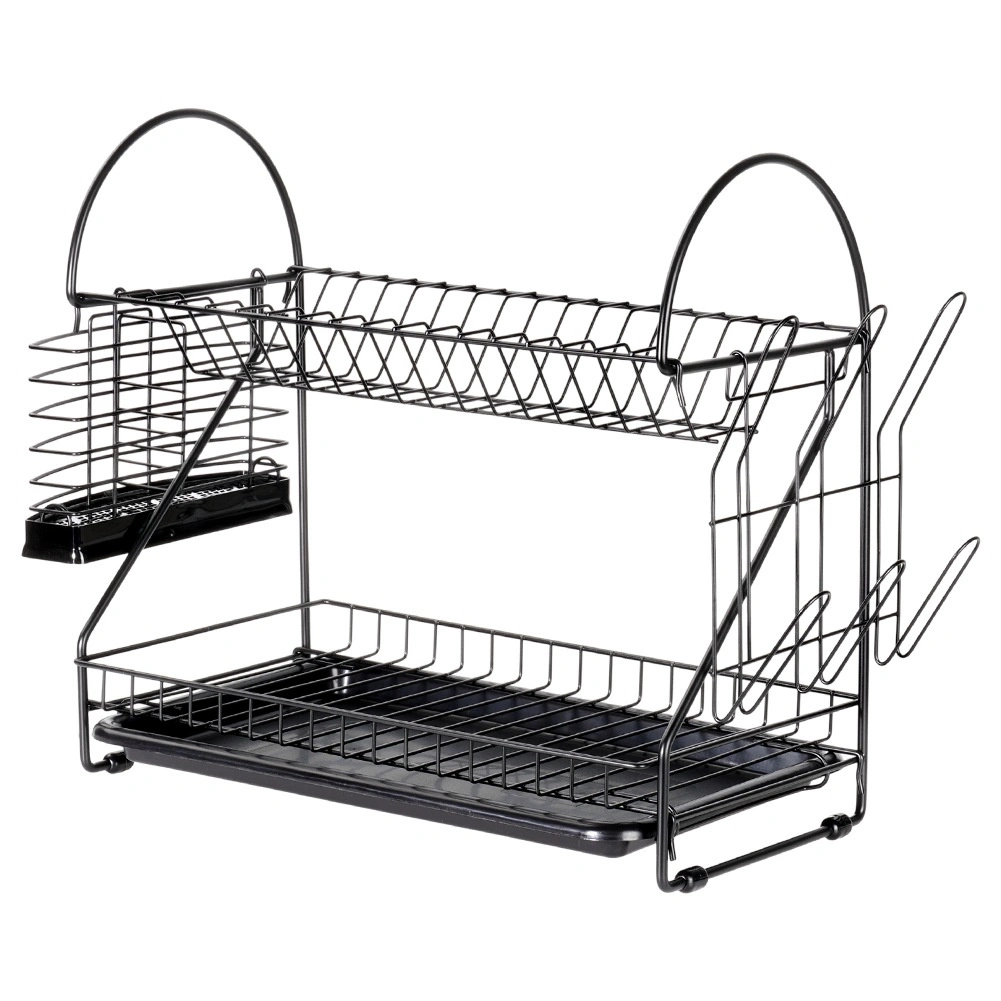 Dvonivojski kovinski odcejalnik za posodo, črn 53 × 24 × 38,5 cm