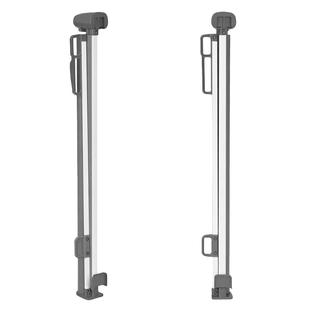 Navijalni mehanizem z areacijskim zaklepom omogoča tekoče izvlečenje in varno fiksiranje želene dolžine. Ograjo odprete in zaprete z eno roko, zato ostajate prilagodljivi pri vsakodnevnih opravilih. Po zložitvi je neopazna in prihrani prostor v sodobnih interierjih.
