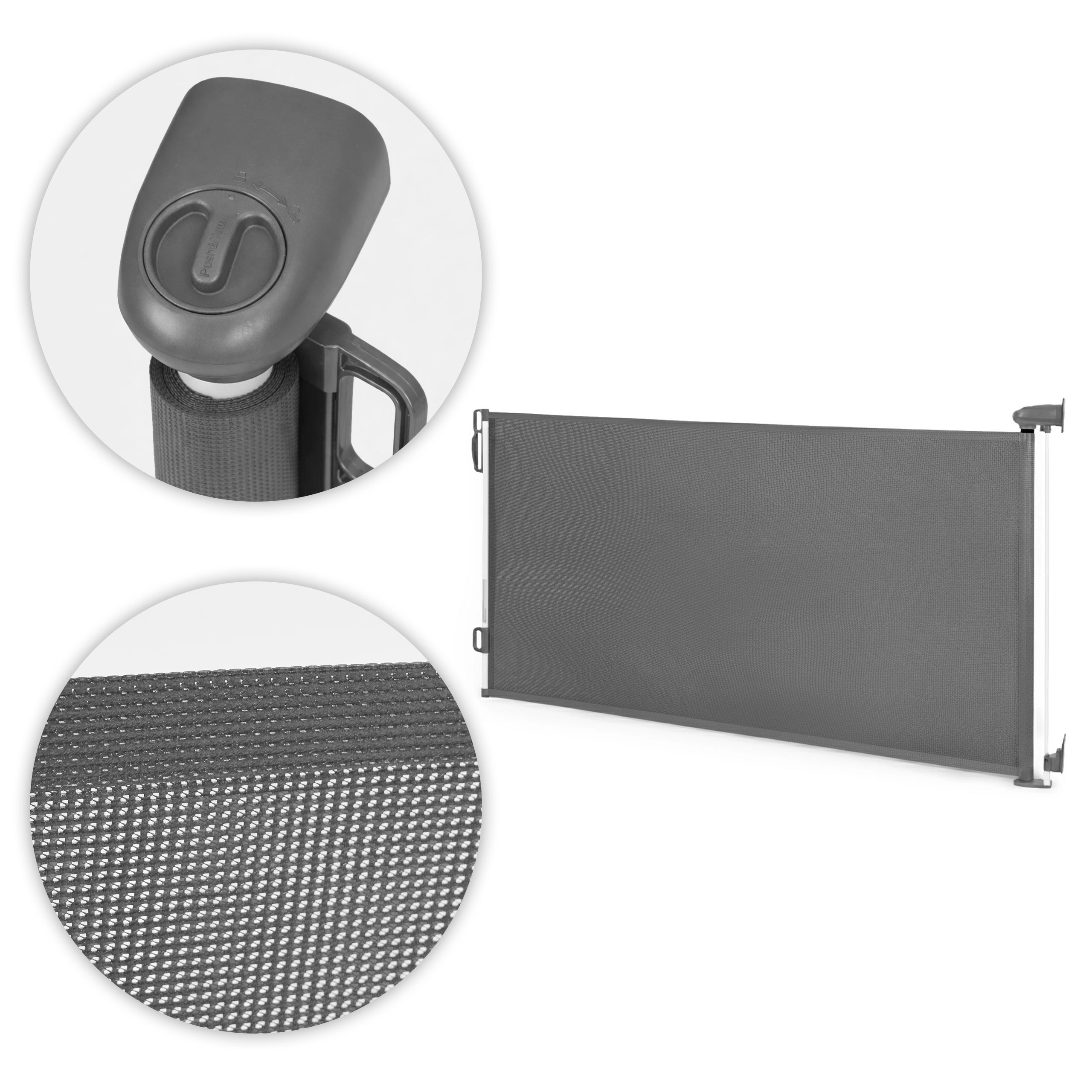 Gladko raztegovanje čez široke prehode in enostavno navijanje, ko ograje ne uporabljate. Idealno za vrata ter spodnji ali zgornji del stopnišča.