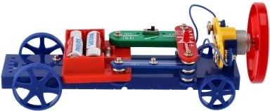 Priložen je model avta in čolna za sestavo resnično delujočih strojev, ki se po priklopu zaženejo oziroma zavrtijo propeler. Komplet je univerzalen – odlično služi kot šolski pripomoček in kot osnova za lastne domače poskuse.