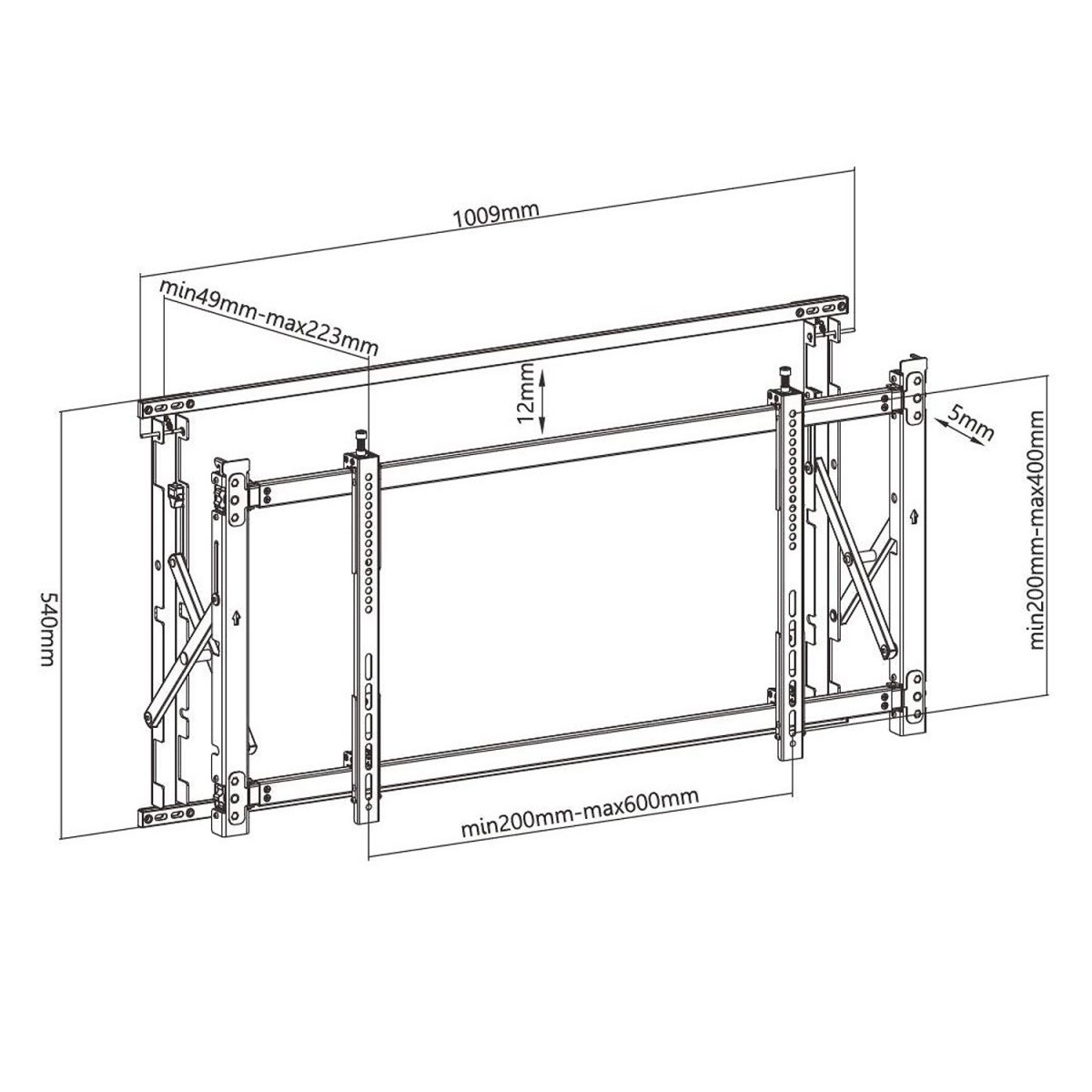 Nosilec MC-845 je univerzalna rešitev za montažo zaslonov velikosti 46–52" v video stenah in digitalnem oglaševanju. Konstrukcija z natančnim nastavljanjem omogoča hitro poravnavo panelov v mreži in udoben dostop za vzdrževanje. Zahvaljujoč široki podpori VESA 200×200 do 600×400 lahko namestite večino komercialnih zaslonov.