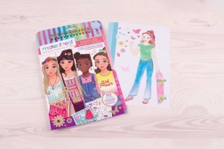 Podajte se na kreativno modno pot v retro slogu. Komplet spodbuja otroško domišljijo in uči osnove oblikovanja od skiciranja silhuet do kombiniranja barv. S pripravljenimi šablonami in nalepkami otroci zlahka ustvarijo svoje izvirne modele.
