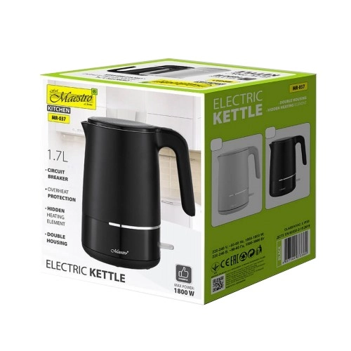 Iščete zanesljiv in eleganten grelnik za vsakodnevno uporabo? Električni grelnik MAESTRO združuje sodoben dizajn s praktičnimi funkcijami. Zahvaljujoč prostornini 1,7 litra zlahka pripravite vročo vodo za vso družino, medtem ko moč 1800 W zagotavlja hitro vrenje brez nepotrebnega čakanja.