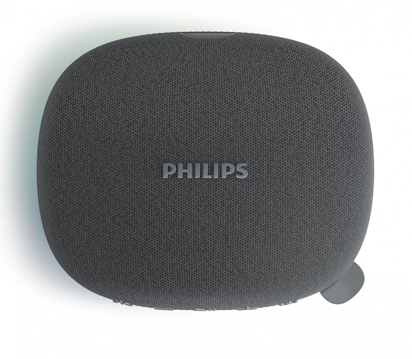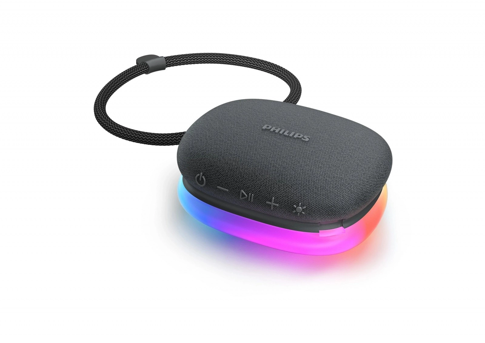 Stilski in prenosni zvočnik PHILIPS s tkaninsko površino in zaobljenimi linijami izstopa po čistem zvoku in presenetljivo močnem basu. Vgrajena večbarvna LED osvetlitev ustvari pravo vzdušje – od dinamičnih party učinkov do pomirjujoče bele svetlobe za večer.