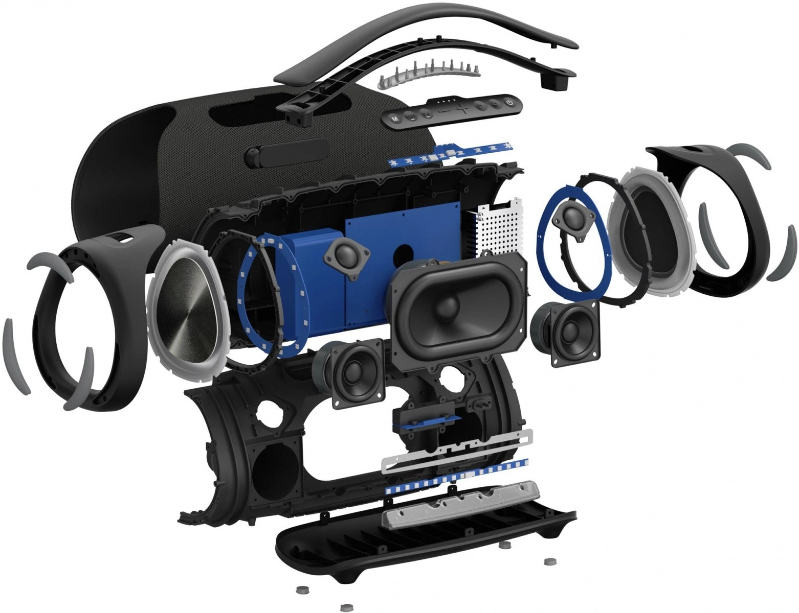 Do 190 W iz omrežja in 130 W iz baterije, pet aktivnih gonilnikov in dva pasivna radiatorja za globok bas in čiste visoke tone – idealno za domače in zunanje zabave.