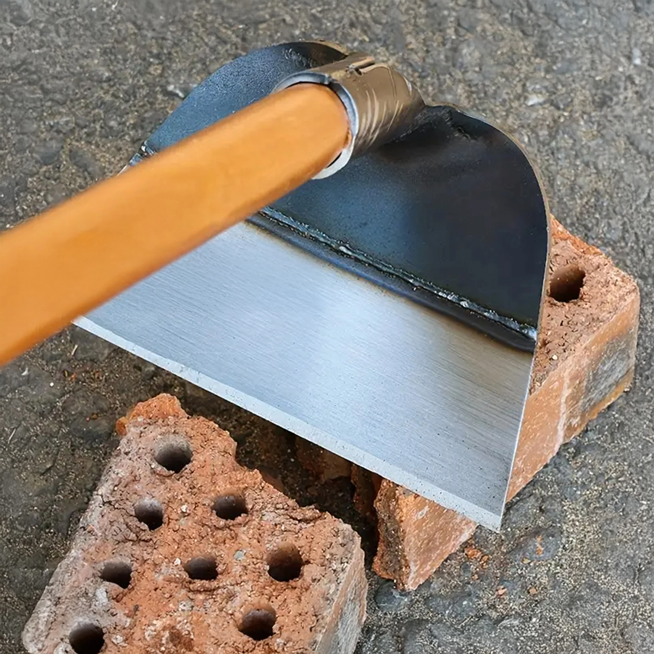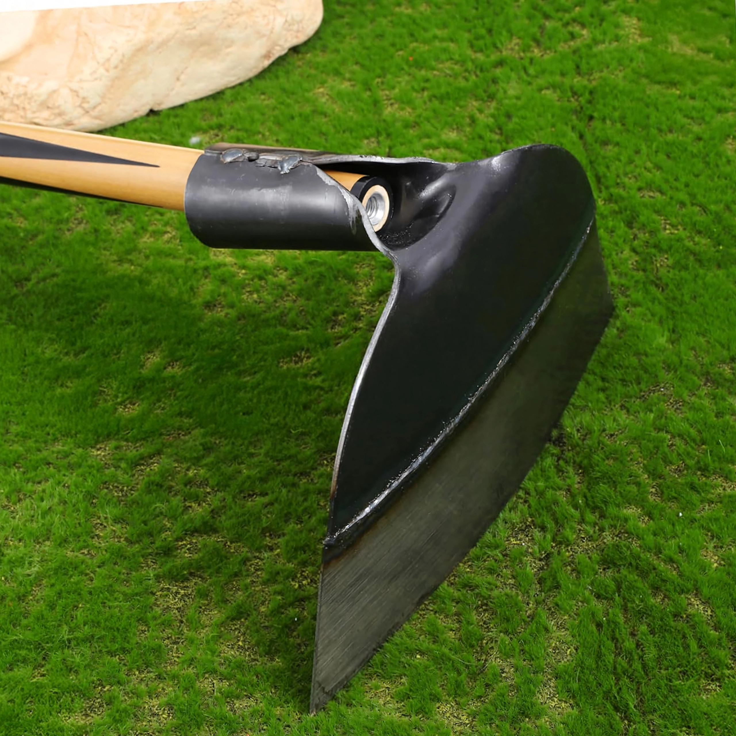 Univerzalna vrtna motika iz kovanega jekla za pletje, rahljanje tal in nego gredic. Širok del orodja 18 × 14 cm z ostro robno stranjo učinkovito prereže plevel in rahlja zemljo. Robustna zasnova zagotavlja dolgo življenjsko dobo in udobno delo na vrtu.