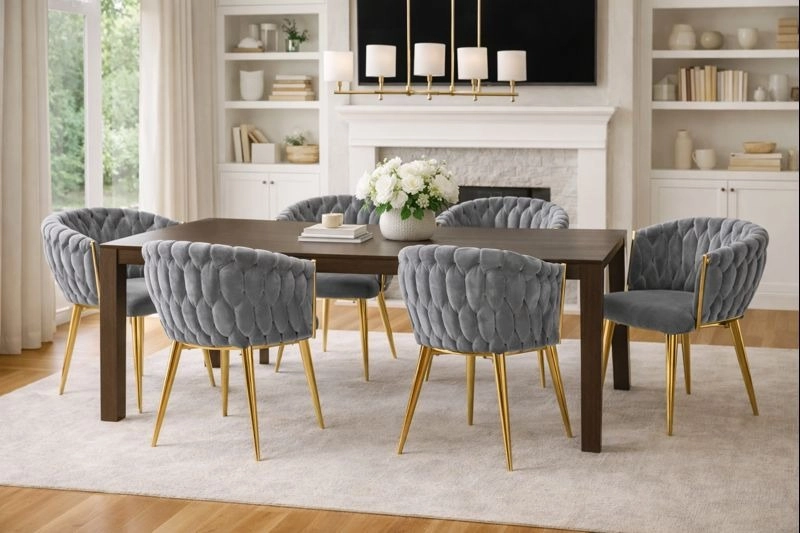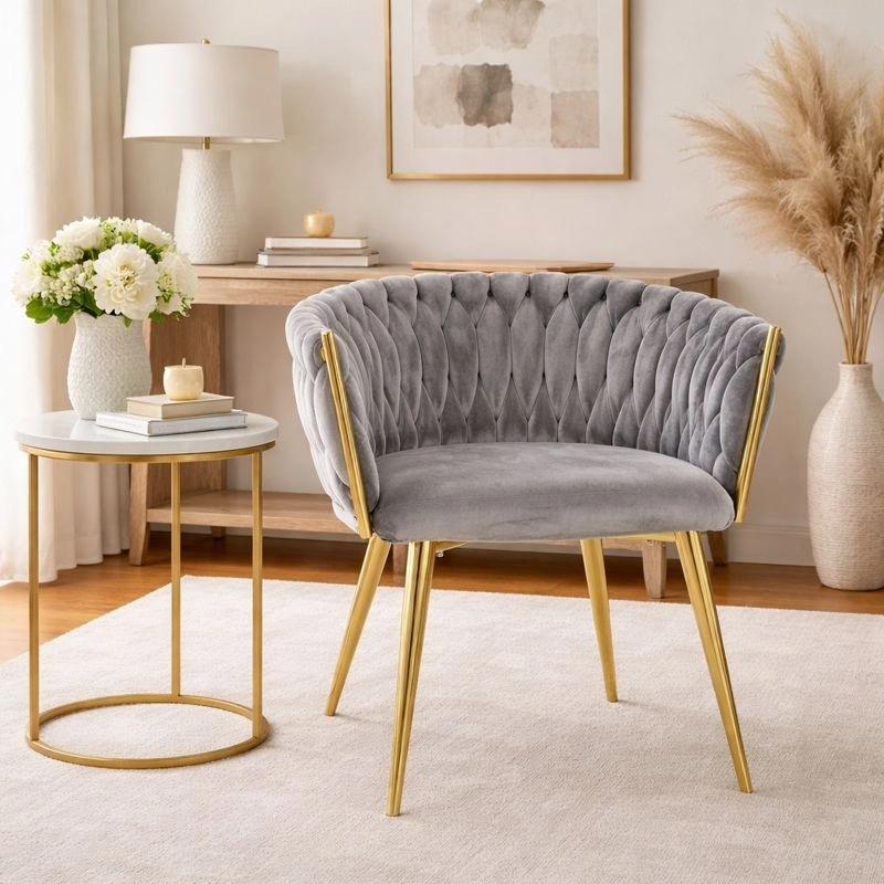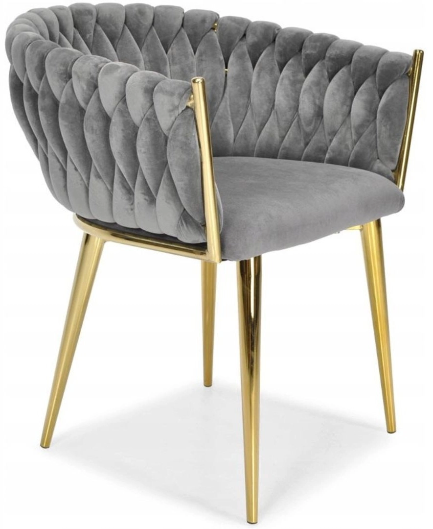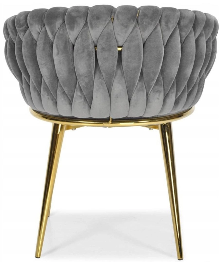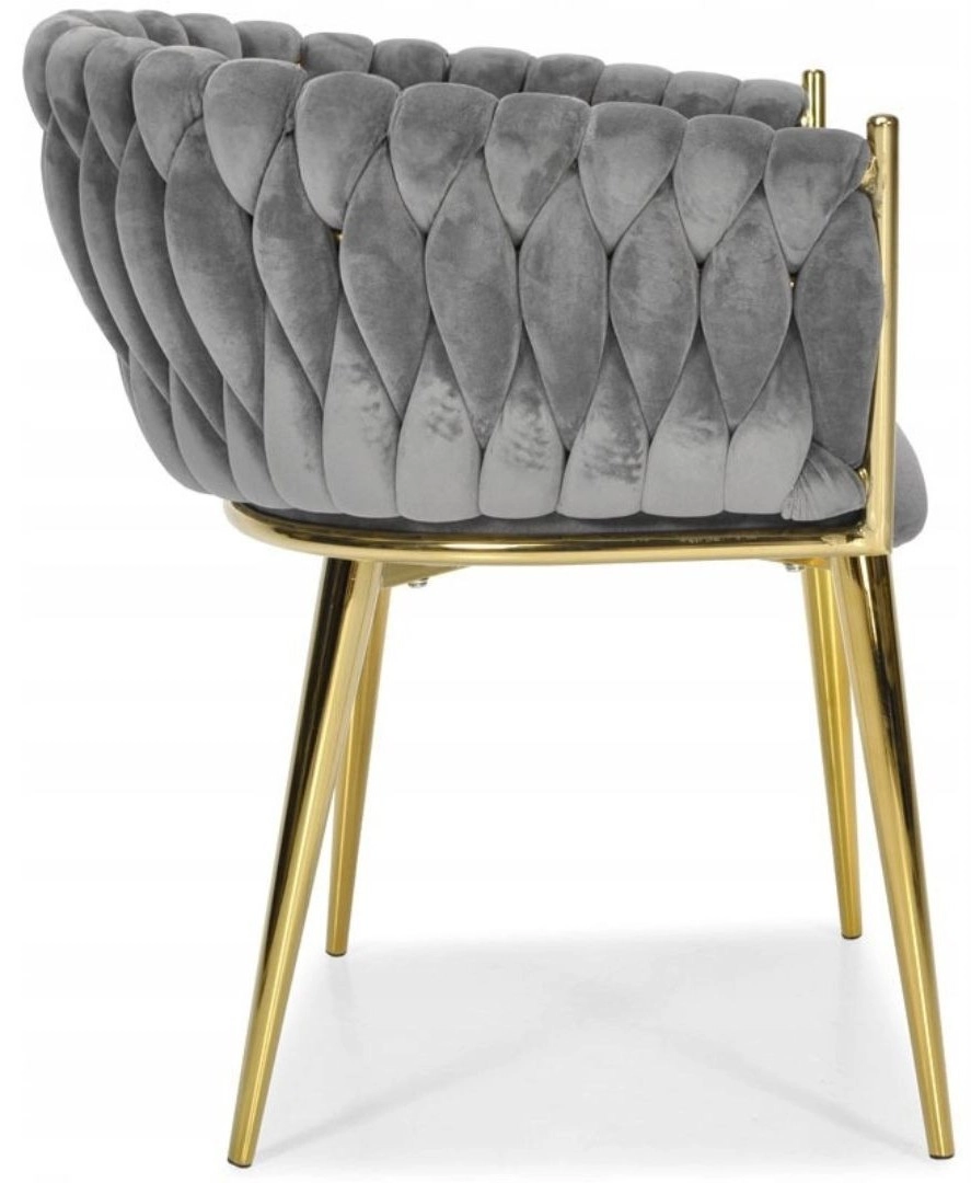 Ta stilski žametni stol prinese v vaš interier takojšen učinek »wow«. Nežno sijoč žamet v sivem odtenku se odlično kombinira z zlatimi poudarki, črno, belo in naravnim lesom. Prepleteno 3D oblazinjenje naslona daje razkošen videz in iz stola naredi oblikovalsko dominanto jedilnice, dnevne sobe ali toaletnega kotička.