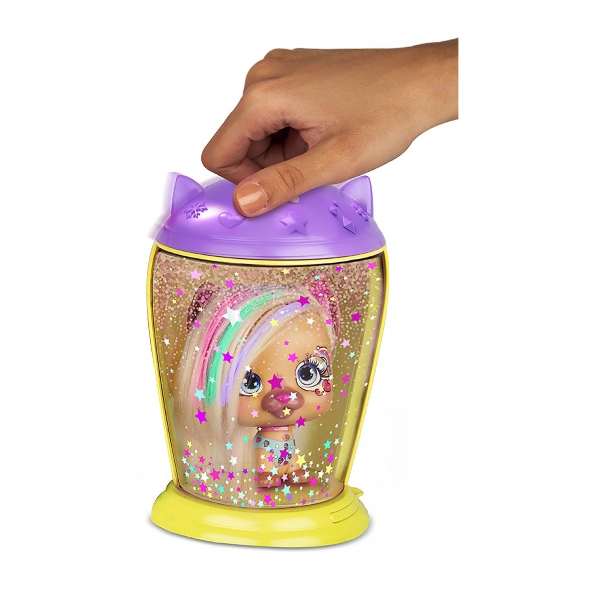 Postavite figurico v komoro, aktivirajte pokrov in opazujte, kako se lasje zasvetijo z zvezdicami in bleščicami.