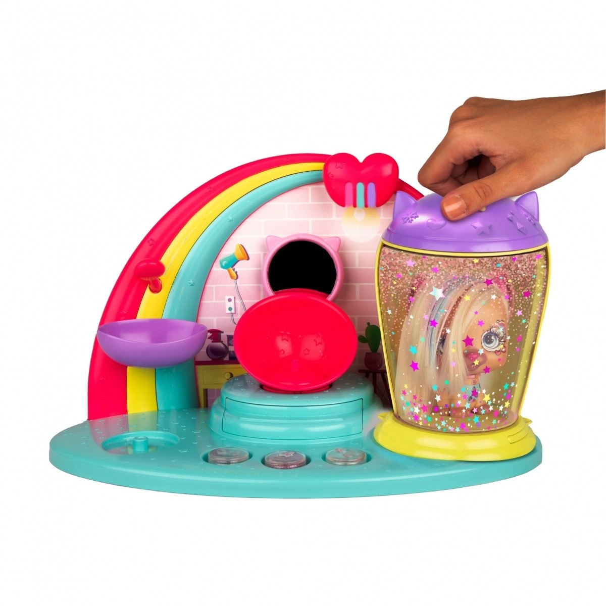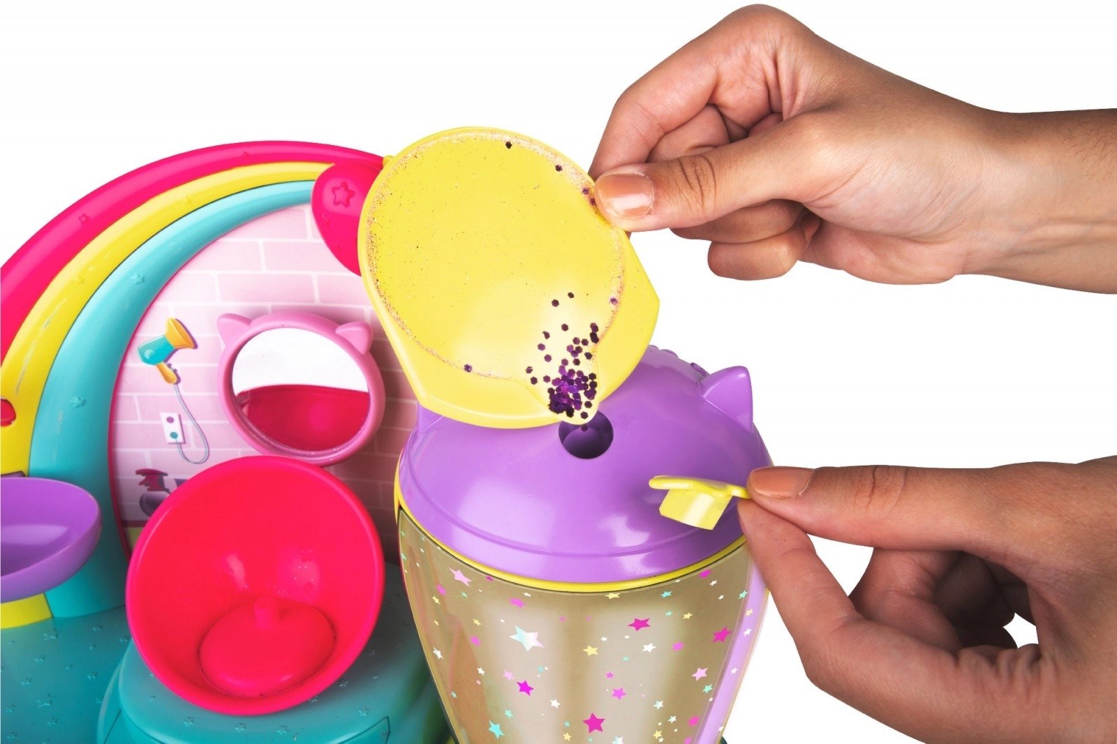 • Realistična frizerska igra s pravo umivalnico in bleščično kapsulo.