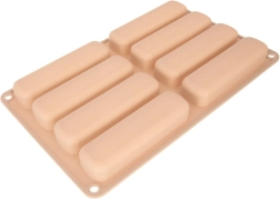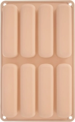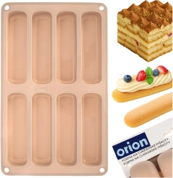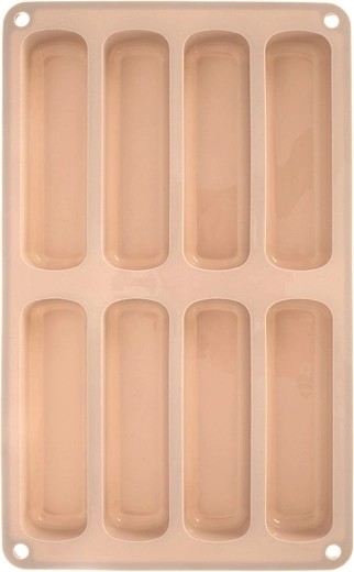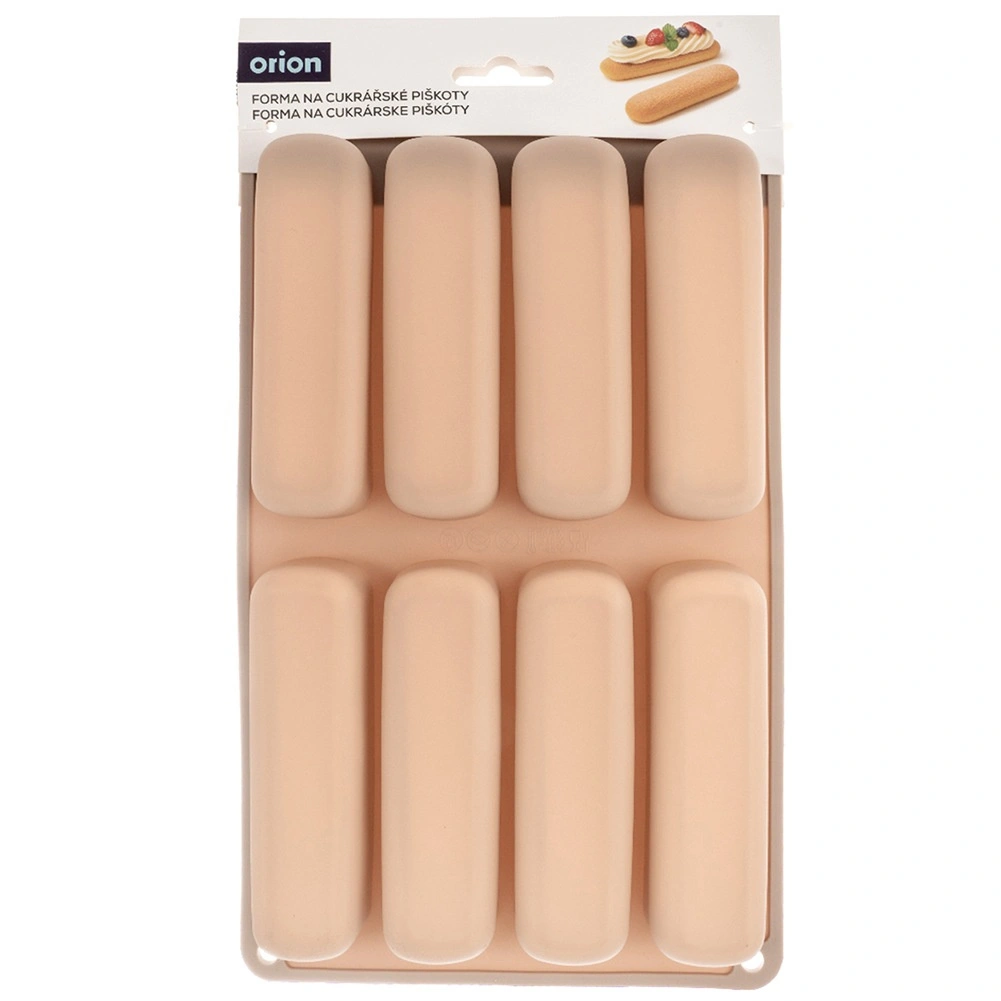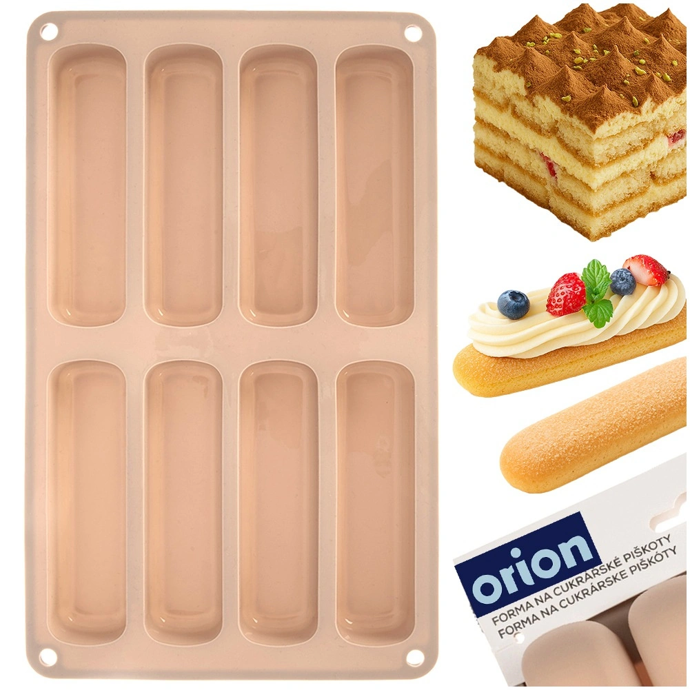 Ta bež silikonski pekač je idealen za pripravo podolgovatih piškotov za tiramisu, sladice v kozarčkih in klasične suhe piškote. Dimenzije pekača so 28 × 17 × 2 cm, vsak kos meri 11,5 × 3 × 2 cm. Material je lahek, prožen in odporen, kar zagotavlja enakomerno peko in enostavno odstranjevanje brez lepljenja.