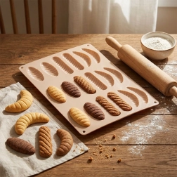 Ta bež silikonski pekač je idealen za domačo peko piškotov, mini tortic ter izdelavo pralin in nepečenih sladic. Zahvaljujoč prožnemu in nelepljivemu materialu je končne kose enostavno odstraniti brez poškodovanja oblike, pekač pa nato udobno pomijete.