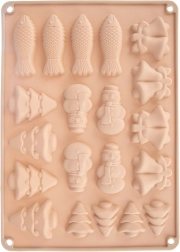 Praktičen silikonski model za peko in hlajenje vam omogoča pripraviti do 20 kosov slaščic v petih zimskih motivih – smrečica, zvonček, snežak in riba. Zahvaljujoč fleksibilnemu silikonu se oblike zlahka odstranijo, nič se ne lepi, model pa je primeren za pečico, mikrovalovno pečico in zamrzovalnik. Poleg tega ga preprosto pomijete v pomivalnem stroju.