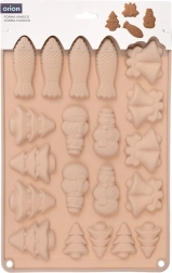 Ta bež silikonski model z merami 34 × 24,5 × 1 cm je idealen za pripravo božičnih piškotov, medenjakov, čokoladic in pralin. Visokokakovosten silikon zagotavlja enostavno odstranjevanje brez lepljenja ter enakomerno pečenje ali strjevanje. Iz ene mase pripravite do 20 kosov v 5 različnih oblikah.
