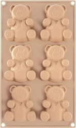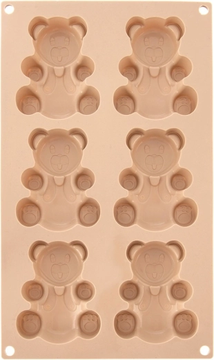 Praktičen silikonski pekač v bež barvi ustvari do 6 ljubkih medvedkov velikosti 8,5 × 7 cm. Je prožen, neprimeljiv in odporen na temperature od -40 °C do +200 °C. Primeren je za pečico, mikrovalovno pečico in zamrzovalnik ter ga je mogoče pomivati v pomivalnem stroju.
