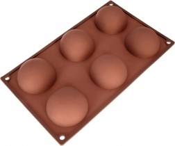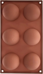 Praktičen silikonski model s šestimi votlinami v obliki polkrogle vam omogoča pripravo elegantnih sladic, pralin, semifreda, sladoleda in mini tortic z popolnoma gladko površino. Je prožen, nelepljiv in omogoča enostavno odstranjevanje. Odporn je na temperature od −40 °C do +200 °C, zato ga lahko uporabite v pečici, mikrovalovni pečici in zamrzovalniku, po uporabi pa ga preprosto vstavite v pomivalni stroj.