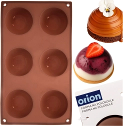 Ta rjav silikonski model s šestimi polkroglastimi votlinami je idealen za pripravo hladnih sladic in pečenih biskvitov. Zahvaljujoč nelepljivi površini se sladice zlahka odstranijo brez poškodbe oblike, model pa ne absorbira vonjav in okusov.