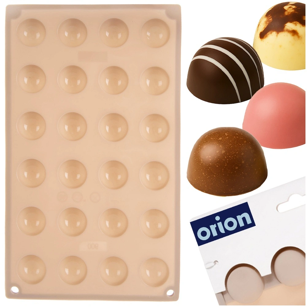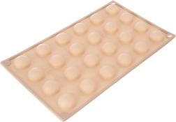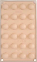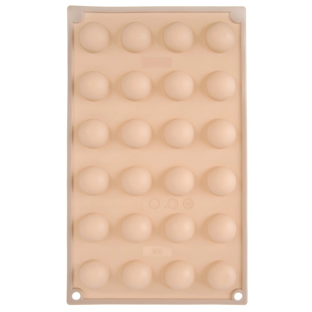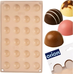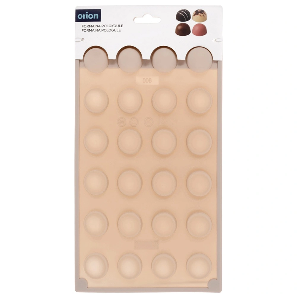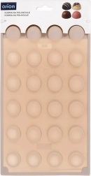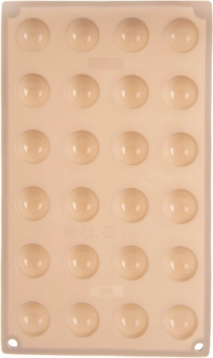 Ta bež silikonski model omogoča preprosto in hitro pripravo pralin, čokoladic in mini tortic profesionalnega videza v obliki polkrogle. Zaradi nelepljive površine se pripravljeni kosi zlahka iztisnejo brez prijemanja, model pa ne prevzema vonjav ali okusov.